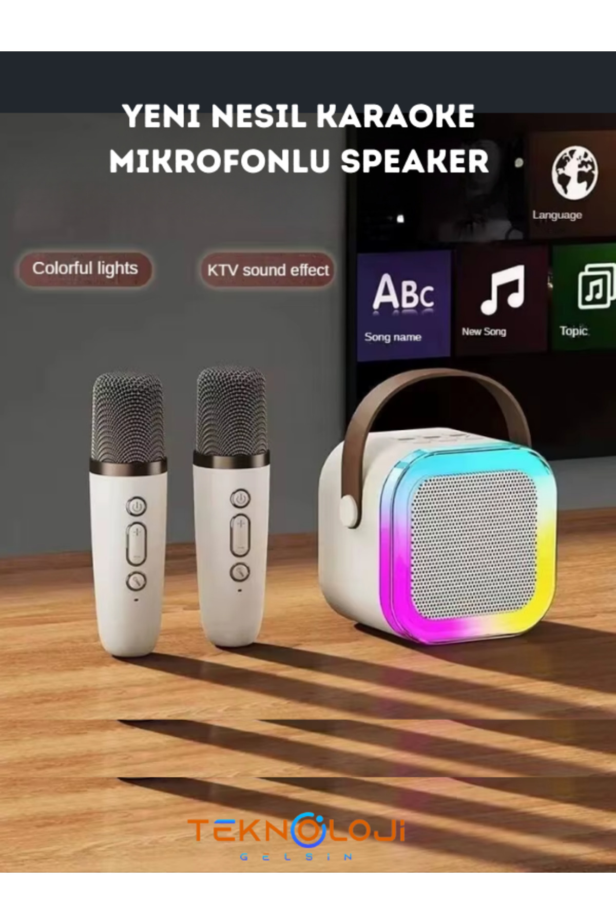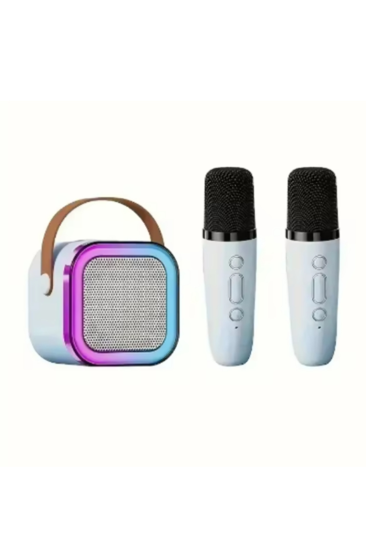 Çift Karaoke Mikrofonlu Kablosuz Bluetooth Hoparlör 5 Ses Efektli Rgb Hd Stereo Ses Usb/Sd/FM