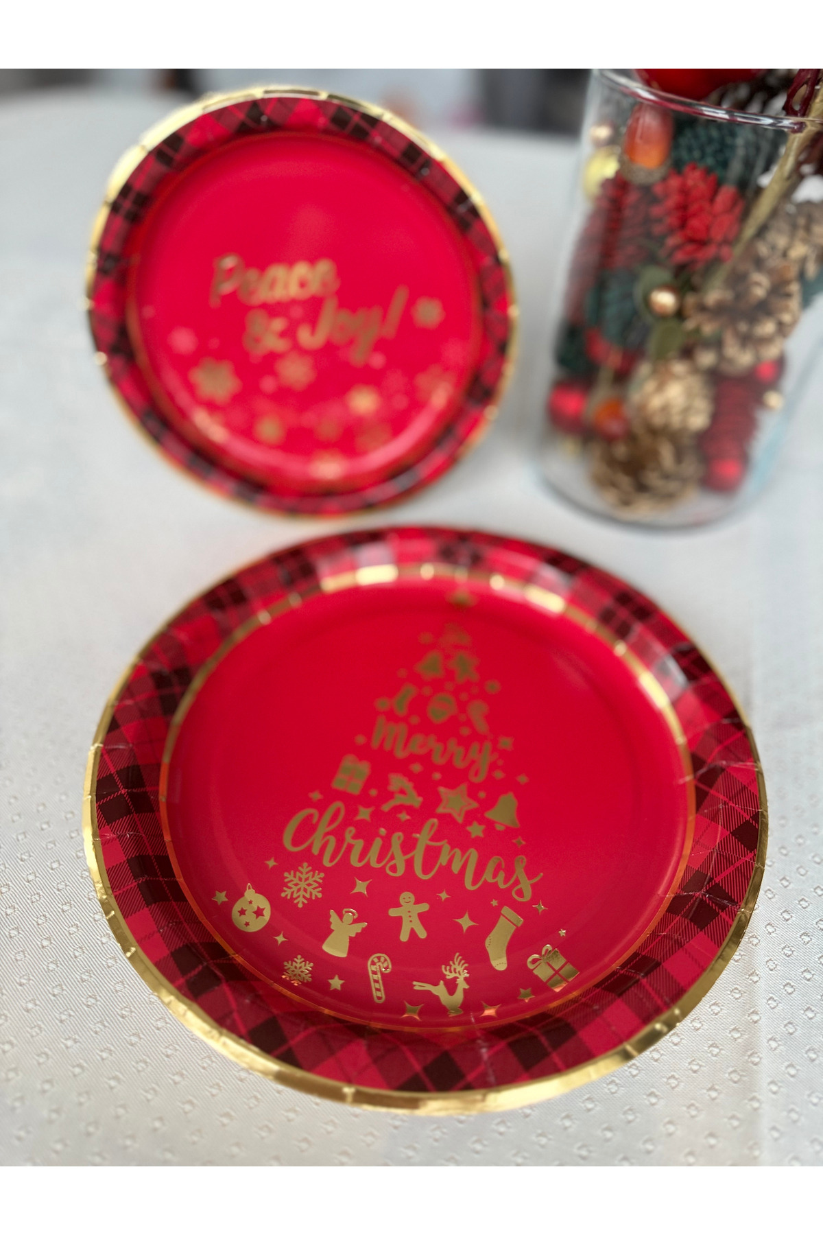 Yılbaşı Peace And Joy Parti Karton Tabak 23 Cm 12 Adet