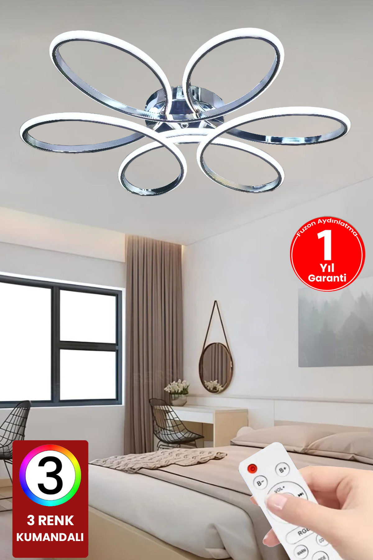 3 Renk Kumandalı Krom Kasa Led Avize Modern Lavinia Ledli Avize