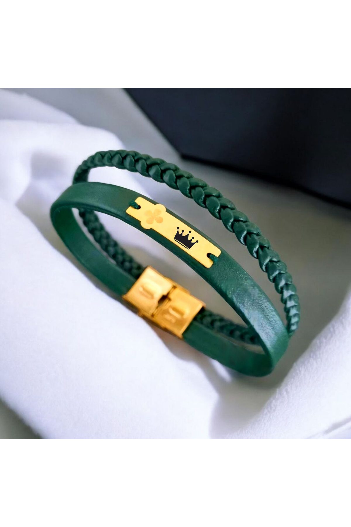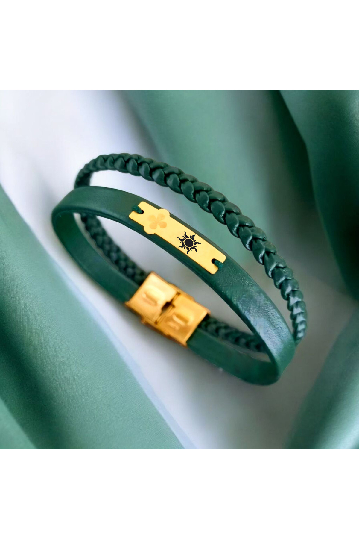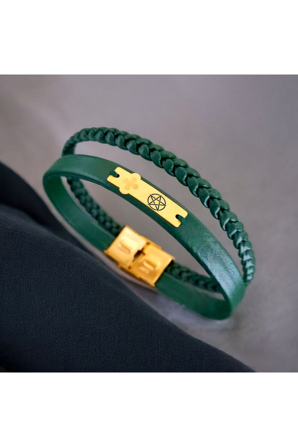 ,,,,,,,,, Deri Kısmı: Hakiki deriden yapılmıştır ,,,,,,,,, Tasarım: Çiçekli Dikdörtgen motifli ve yeşil renkli deri detaylı ,,,,,,,,, Kişiselleştirme: Plaka üzerine kişiye özel isim, harf ve sembol yazılabilir ,,,,,,,,, Hediye Seçeneği: Özel tasarımıyla kişiye özel, anlamlı bir hediye ,,,,,,,,, Kullanım Alanı: Günlük kullanım ve özel günler için uygundur ,,,,,,,,, Üretim: El yapımı olup özenle tasarlanmıştır ,,,,,,,,, Cinsiyet: Erkekler için uygundur ,,,,,,,,, Kapanış Tipi: Ayarlanabilir tokalı kilit mekanizması ,,,,,,,,, Ağırlık: Dayanıklı ve konforlu kullanım için idealdir ,,,,,,,,, Bilekliğin Uzunluk Ölçüsü: Kilitliyken 22 cm, Kilitsiz 19 cm — Önemli Not: Bilekliğin uzunluk ölçüsü, el yapımı ve doğal deri olması nedeniyle yaklaşık ±1 cm toleransa sahiptir ve kolayca ayarlanabilir.