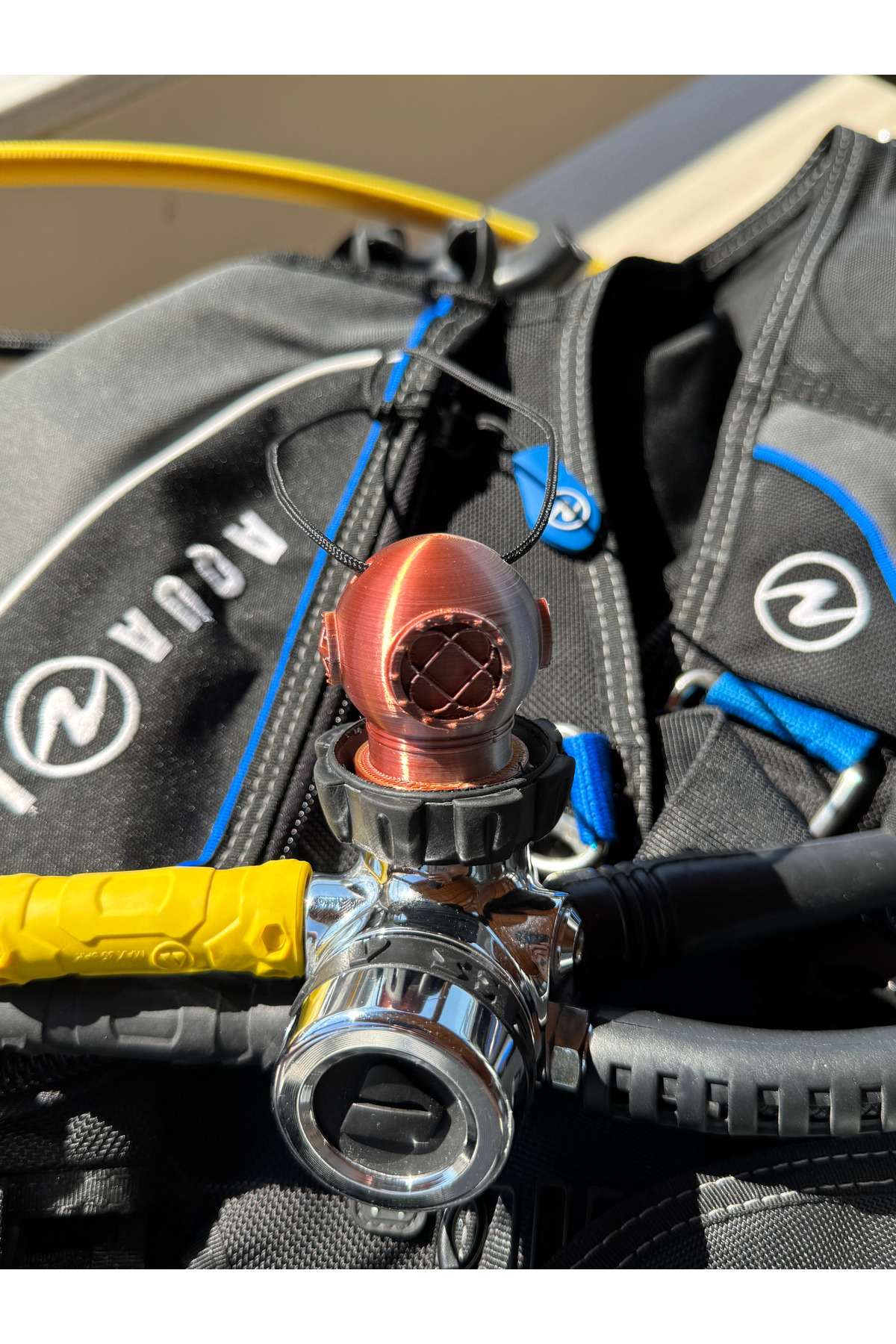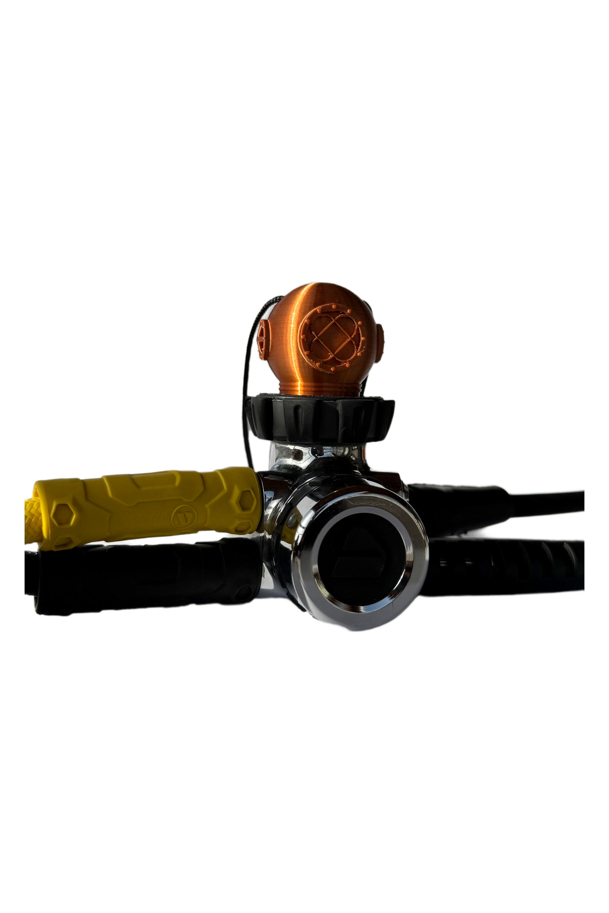 Efsanevi Mark 5 Dalış Başlığı tasarımına sahip özel regülatör koruma kapağı.