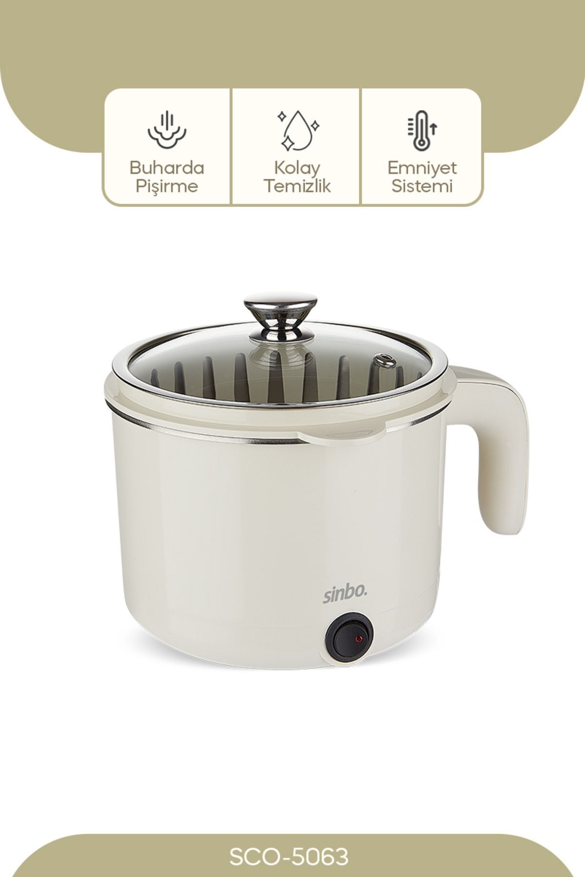 Sinbo SCO-5063 Çok Fonksiyonlu Buharlı Pişirici Ürün Özellikleri • Kapasite: 1 Litre • Paslanmaz gizli rezistans • Işıklı açma / kapama düğmesi • Buharda pişirme tepsisi • Çorba, pilav, makarna, sebze pişirme, yumurta haşlama • Geniş ağzı sayesinde kolay temizlenebilir • Temperli cam kapak • Aşırı ısınma ve susuz çalışmayı önleyen emniyet sistemi • 220-240VAC, 50/60Hz, 400W • Buharda pişirme tepsisi • Çorba, pilav, makarna, sebze pişirme, yumurta haşlama • Geniş ağzı sayesinde kolay temizlenebilir