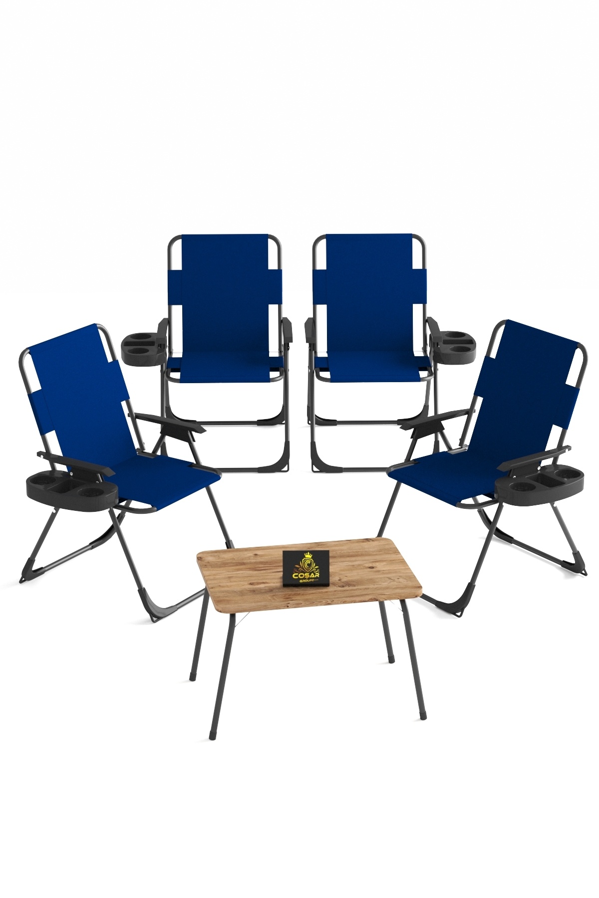 4 Adet Katlanır Kamp Sandalye ve Masa Seti-Taşınabilir Piknik Bahçe Sandalyesi-Masası Bardaklıklı