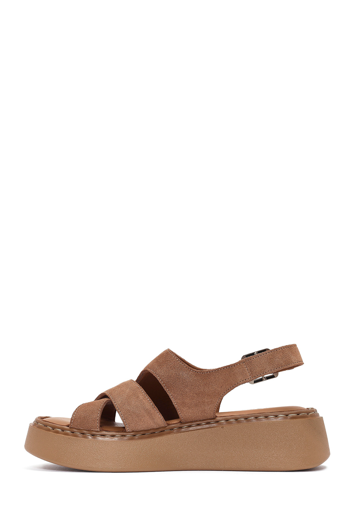 Kadın Pudra Bilekten Tokalı Kalın Tabanlı Süet Deri Comfort Sandalet Sığır derisi içermektedir.