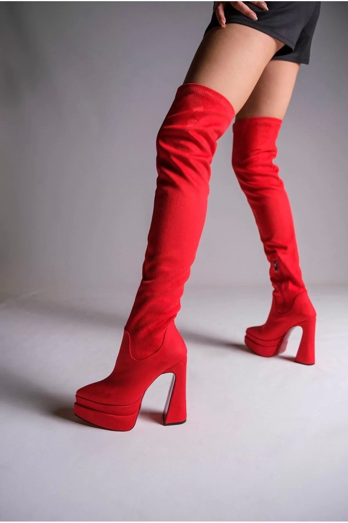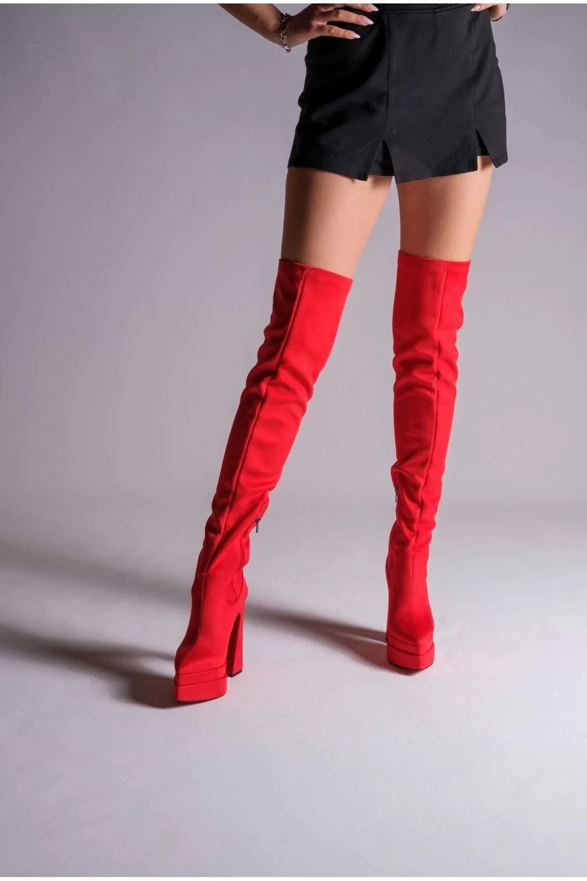Kadın Çift Platform Yüksek Topuklu Diz Üstü Çizme, Topuk Boyu: 14 cm yüksekliğiyle zarafetin simgesi oluyor.