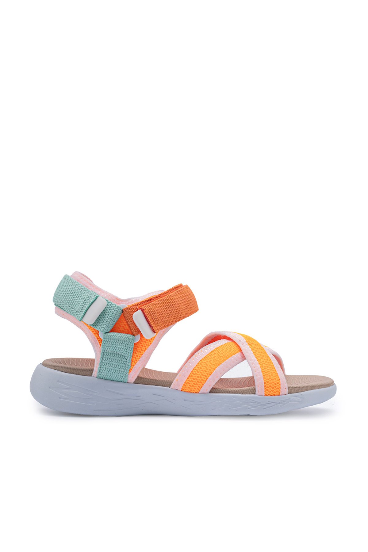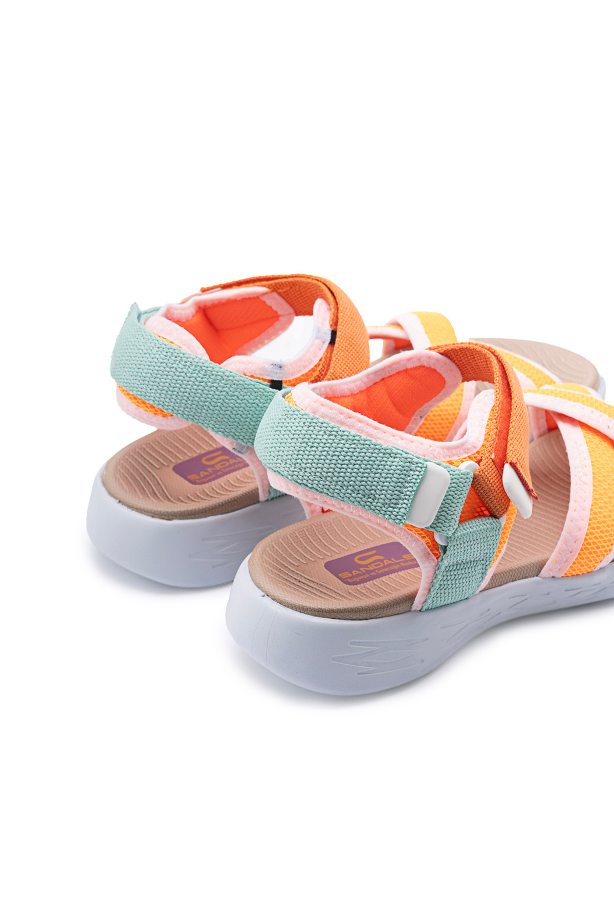 - Yeşil ve oranj renk kombinasyonuyla dikkat çeken bu sandalet, sportif şıklığınızı tamamlar.