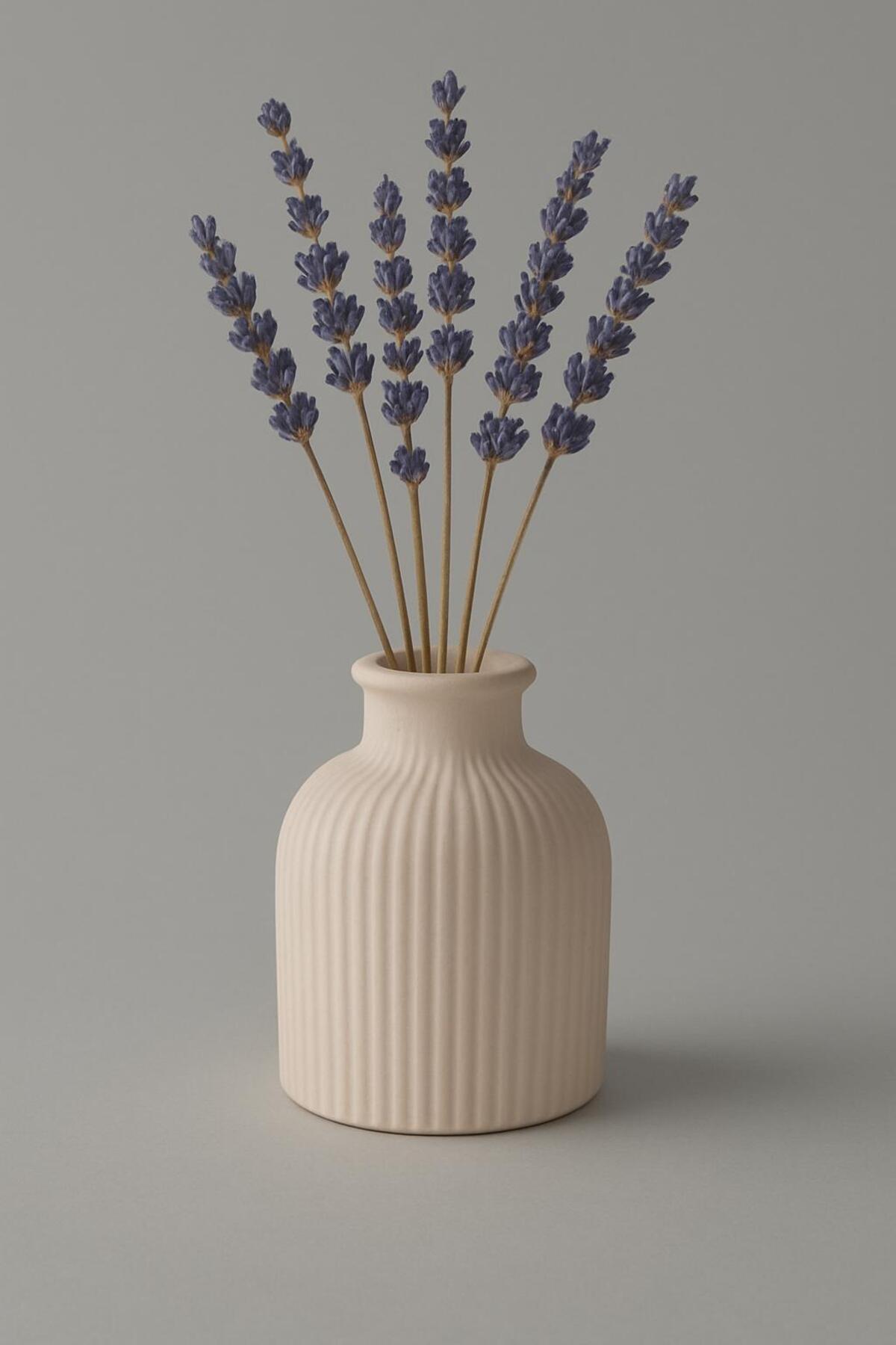 Dekoratif Beton Vazo Küçük Boy - Çizgi Desenli - 9,5x6,5 - Kuru Çiçek - Dekoratif Çiçek Vazosu