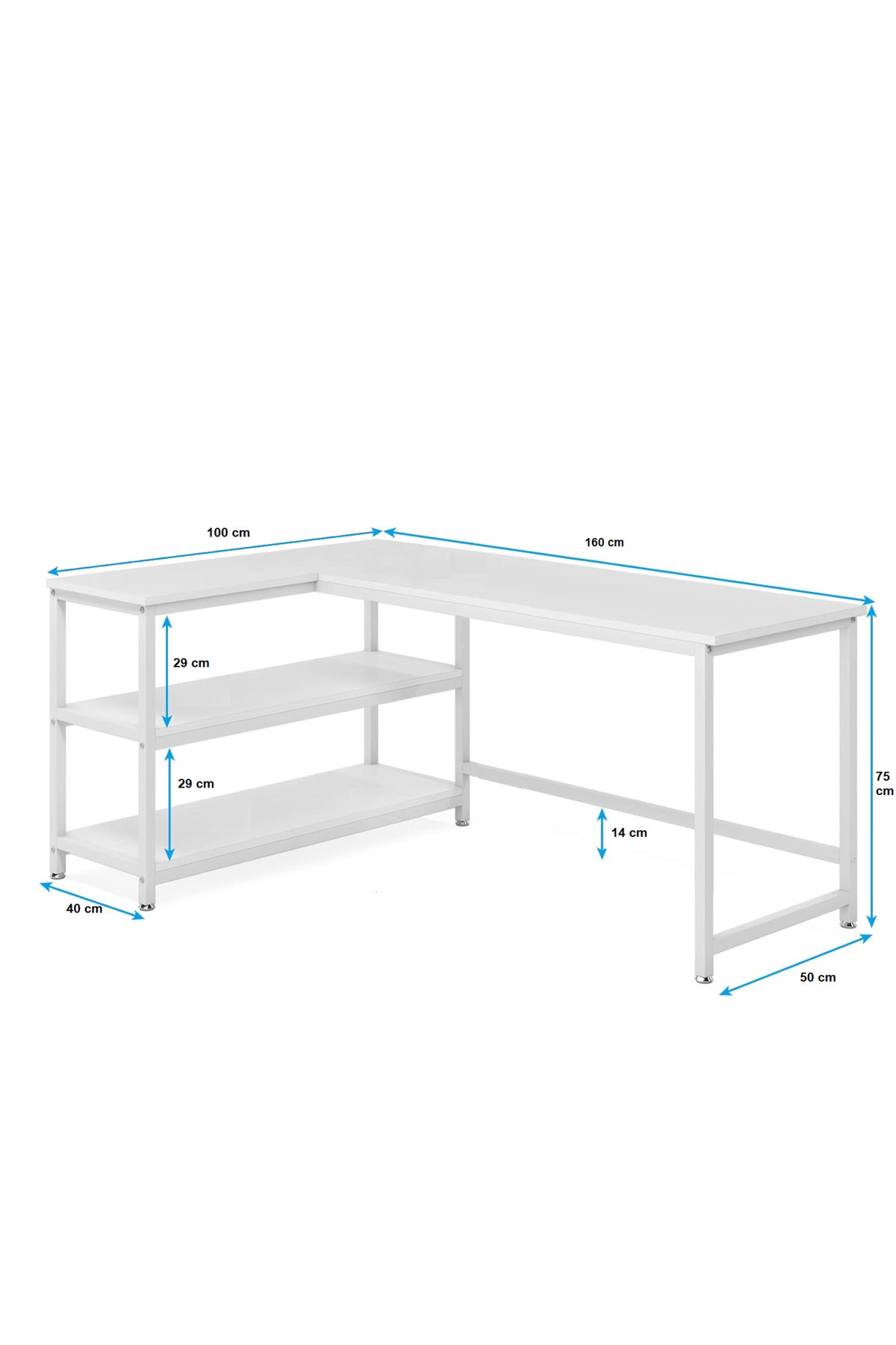 89054 160 Cm L Masa Oyun Masası Çalışma Masası Kitaplıklı Masa Ofis Masası Yazı Masası Beyaz