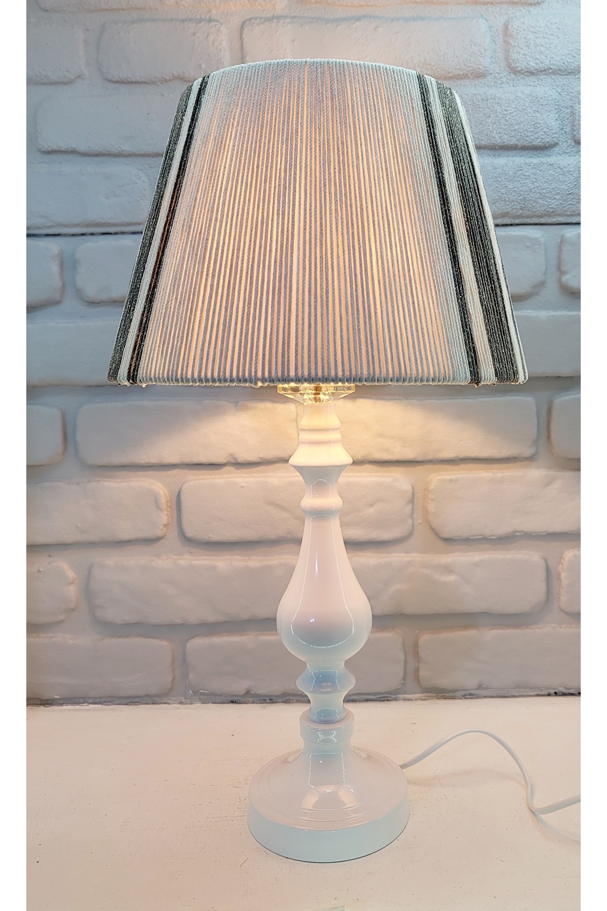 Beyaz Rustik Klasik Metal Yüksek Ayaklı Pileli Makrome ve Kağıt İp Örme Şapkalı Abajur Masa Lambası .