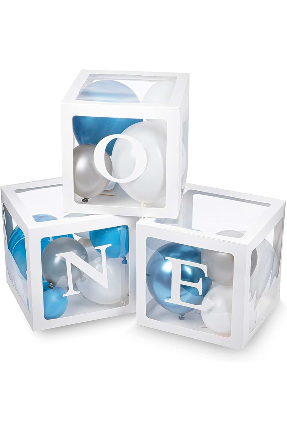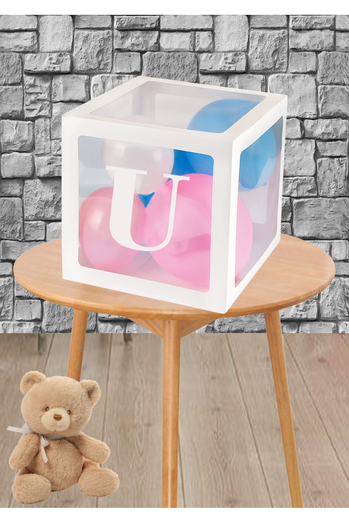 İ Harfli Şeffaf Beyaz Balon Kutusu ve 5 adet Küçük Balon Seti Hastane Odası Doğumgünü Süsleme