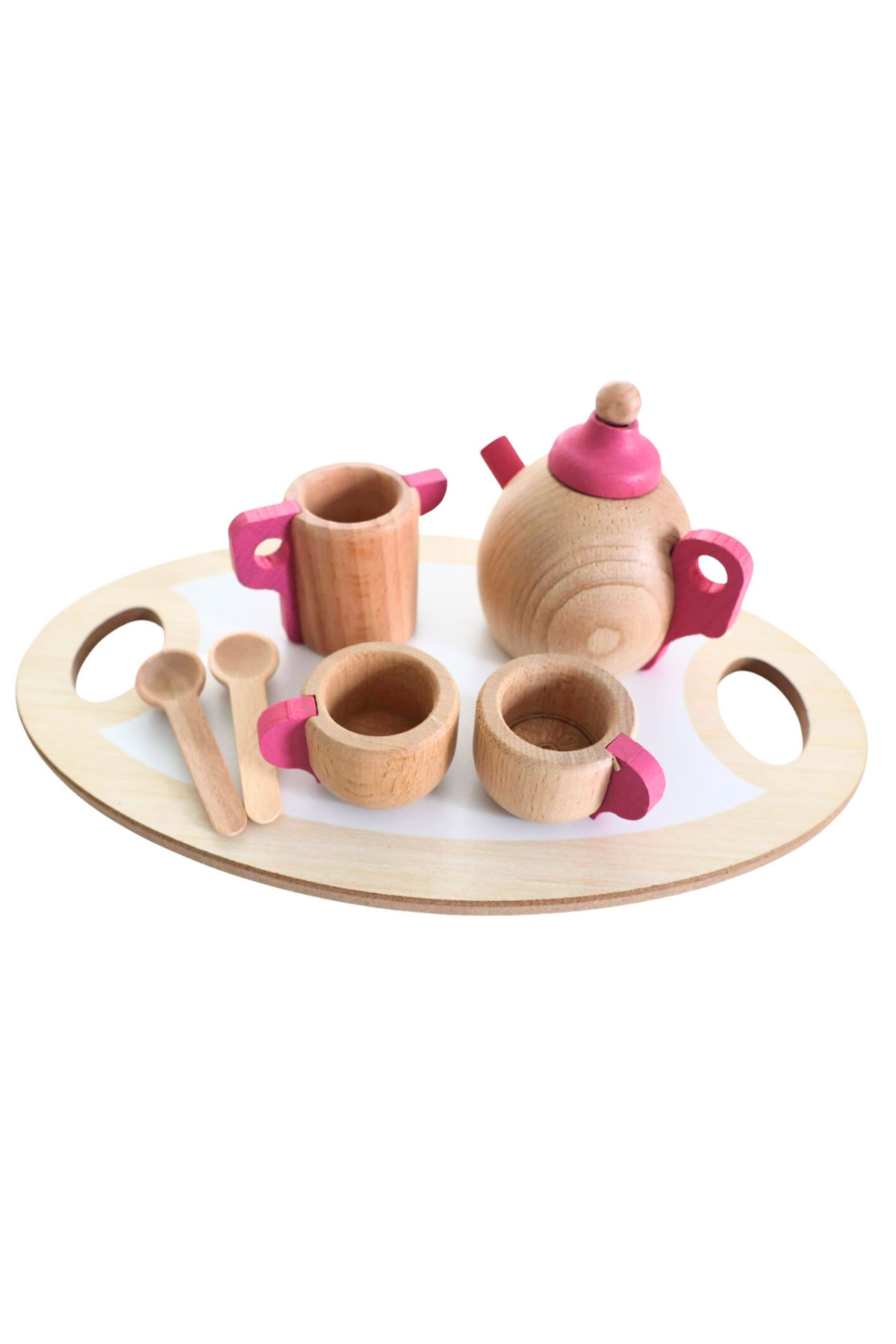 Eğitici Pembe Ahşap Oyuncak Çay Seti