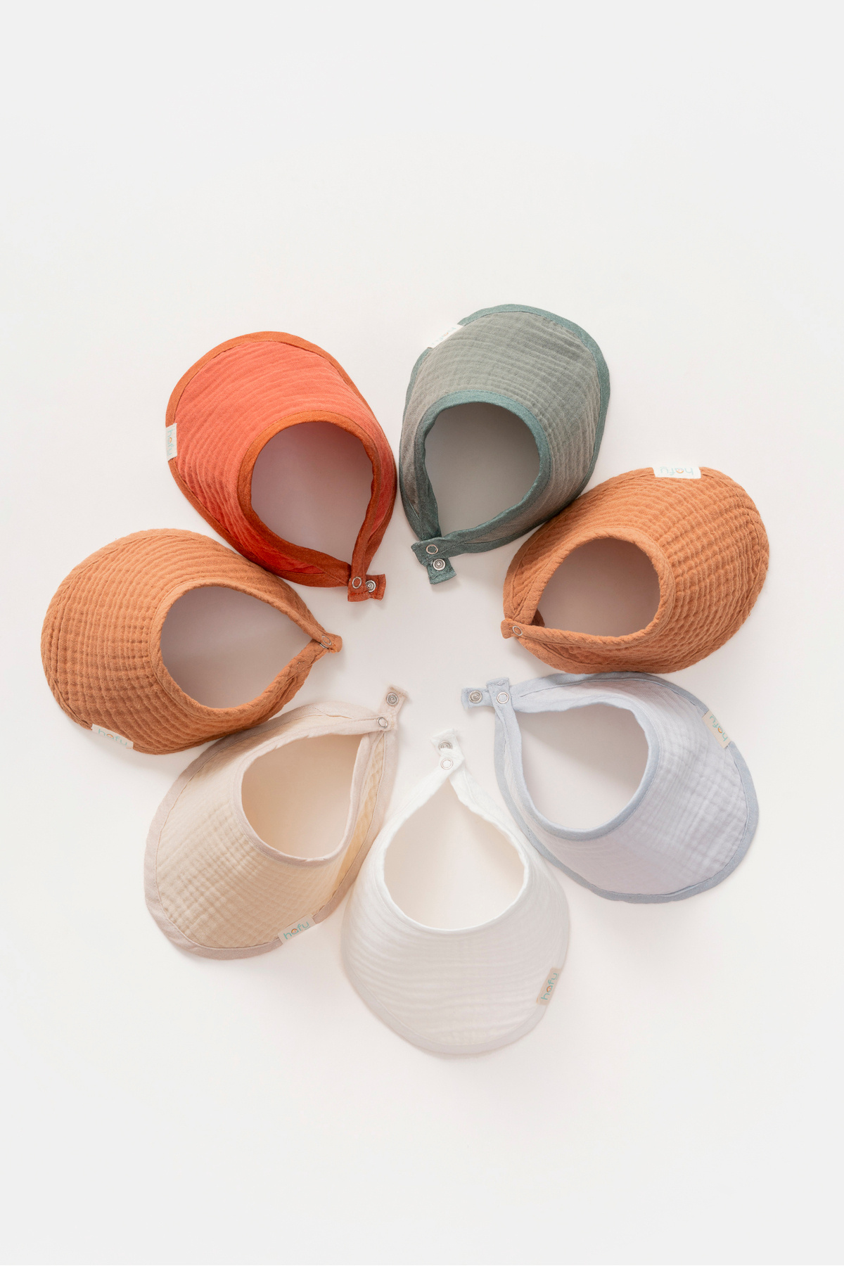 %100 Organik Pamuklu 4 Kat Muslin Kumaş 7'li Erkek Bebek Mama Önlüğü Ağız Mendili