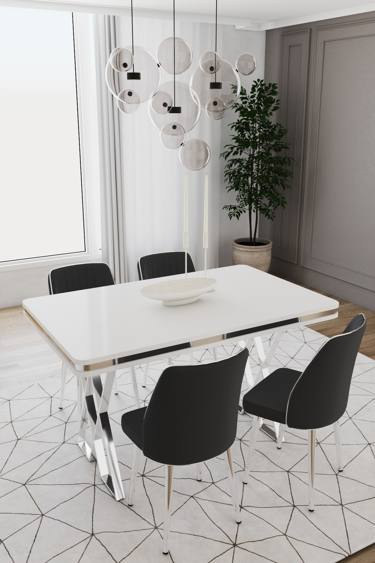 Val Gümüş Serisi 80x130 MDF Masa 4 Adet Metal Ayaklı Silinebilir Kumaş Masa Takımı Antrasit Sandalye