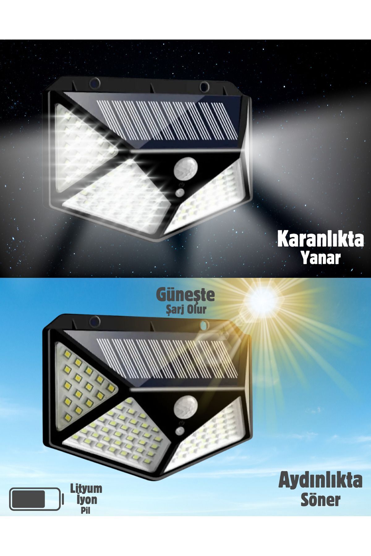 4'lü Paket 100 Led Güneş Enerjili Hareket Sensörlü 4 Taraflı Aplik Bahçe Bahçe Aydınlatma Lambası