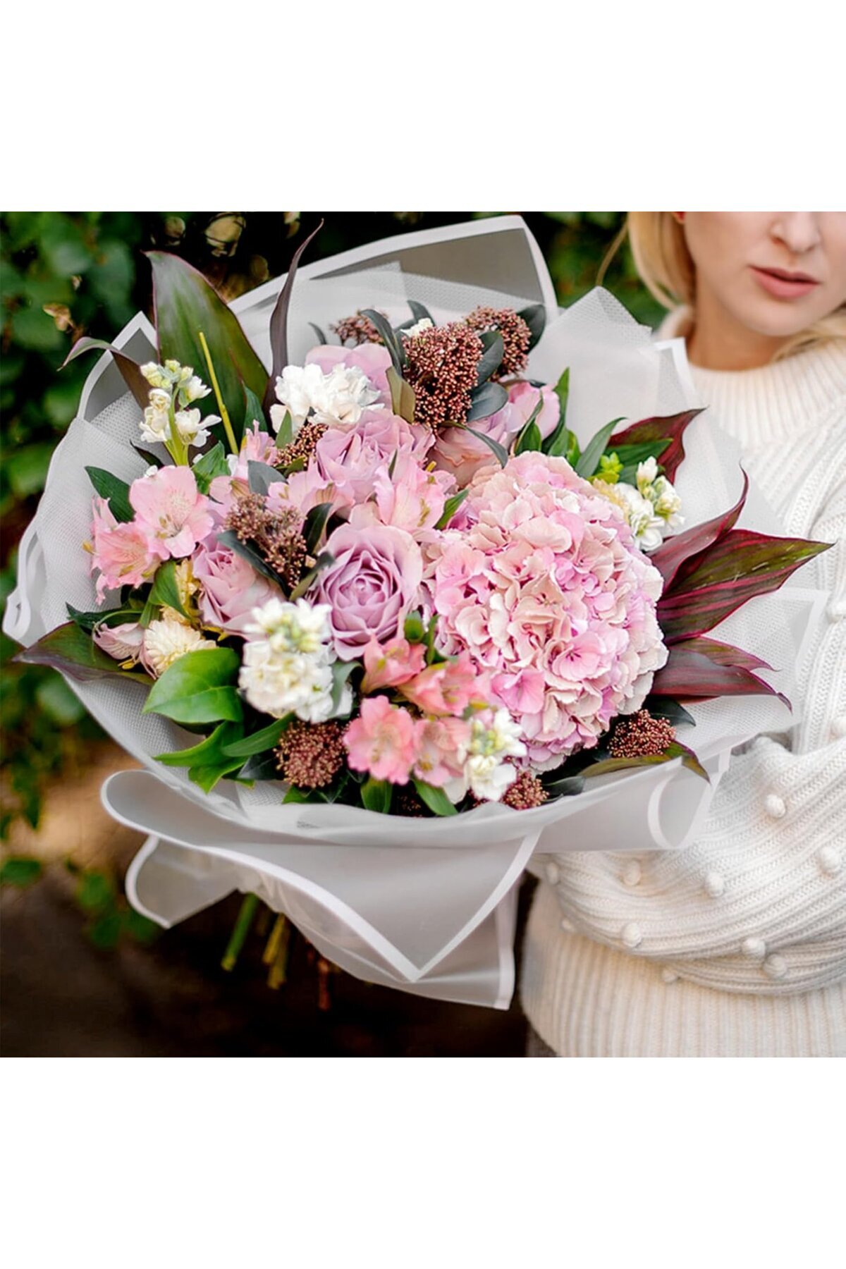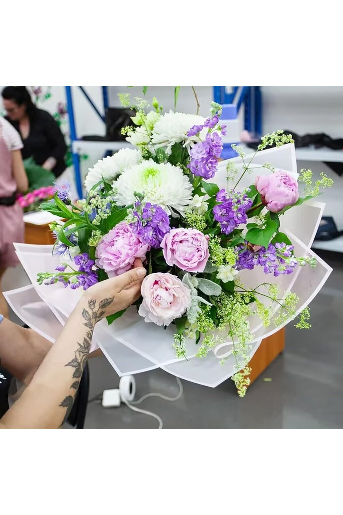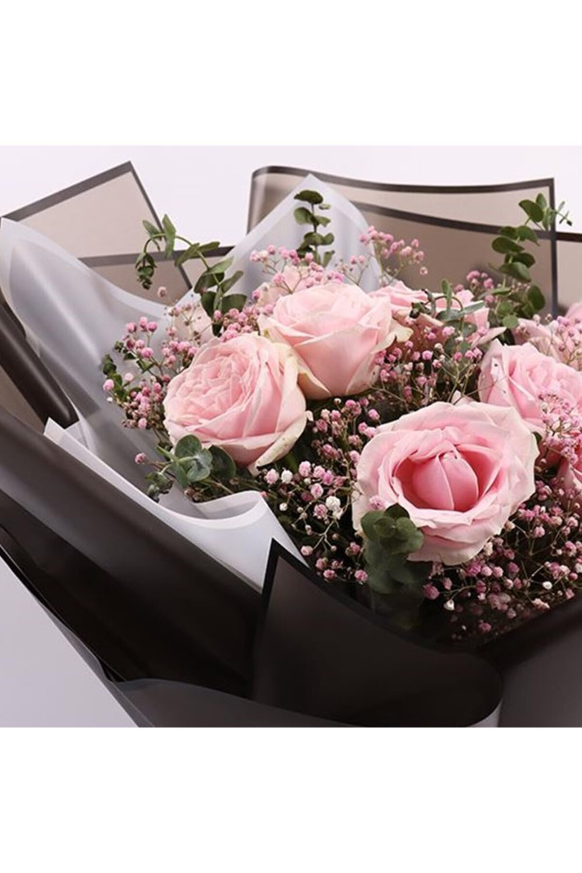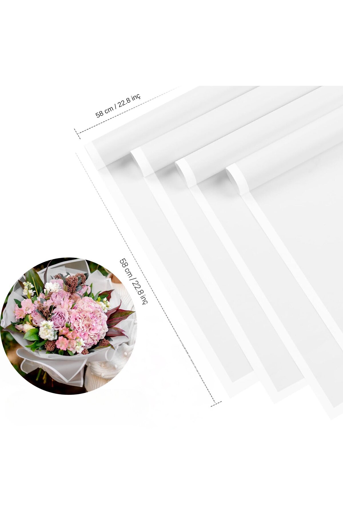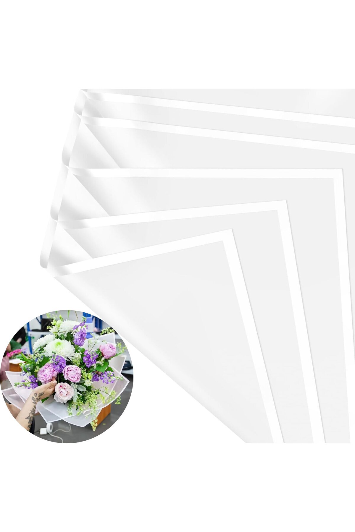 Beyaz Kenarlı Beyaz Çiçek Ambalaj Kağıdı 20'li, Su Geçirmez Mat Şeffaf Buket Sargı Kağıdı, 58x58 Cm