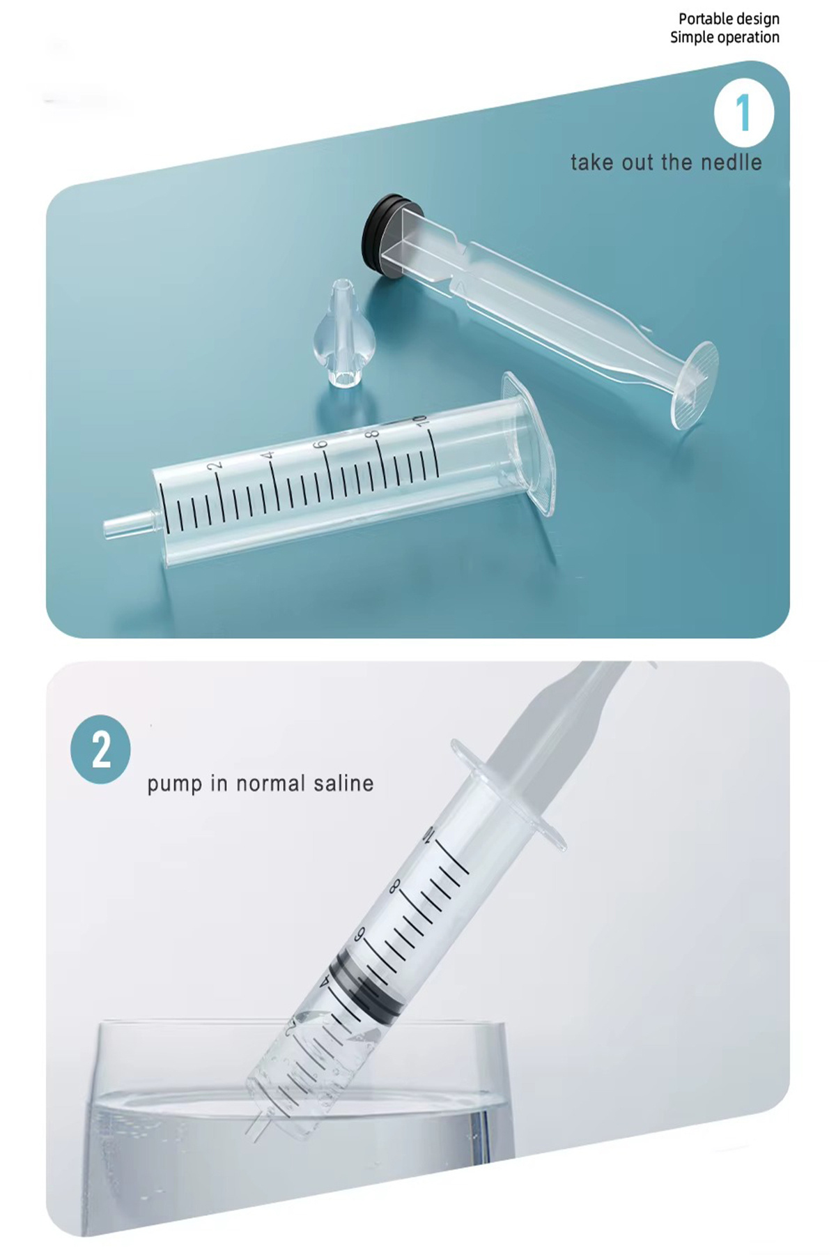 - 10ml kapasiteli şırınga tasarımı sayesinde burun deliklerini nazikçe temizlerken maksimum hijyen sağlar.
