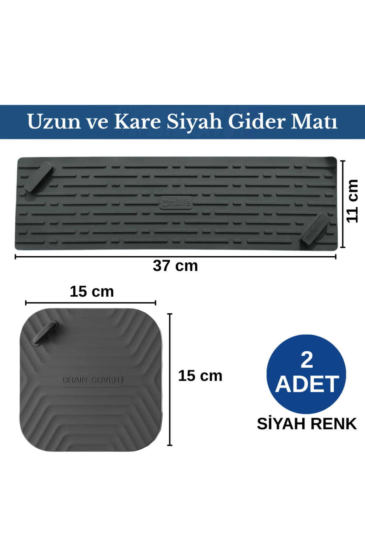 1+1 Siyah Uzun ve Siyah Kare Tasarımlı Koku Önleyici Silikon Gider Kapakları Banyo Mutfak ve Balkon