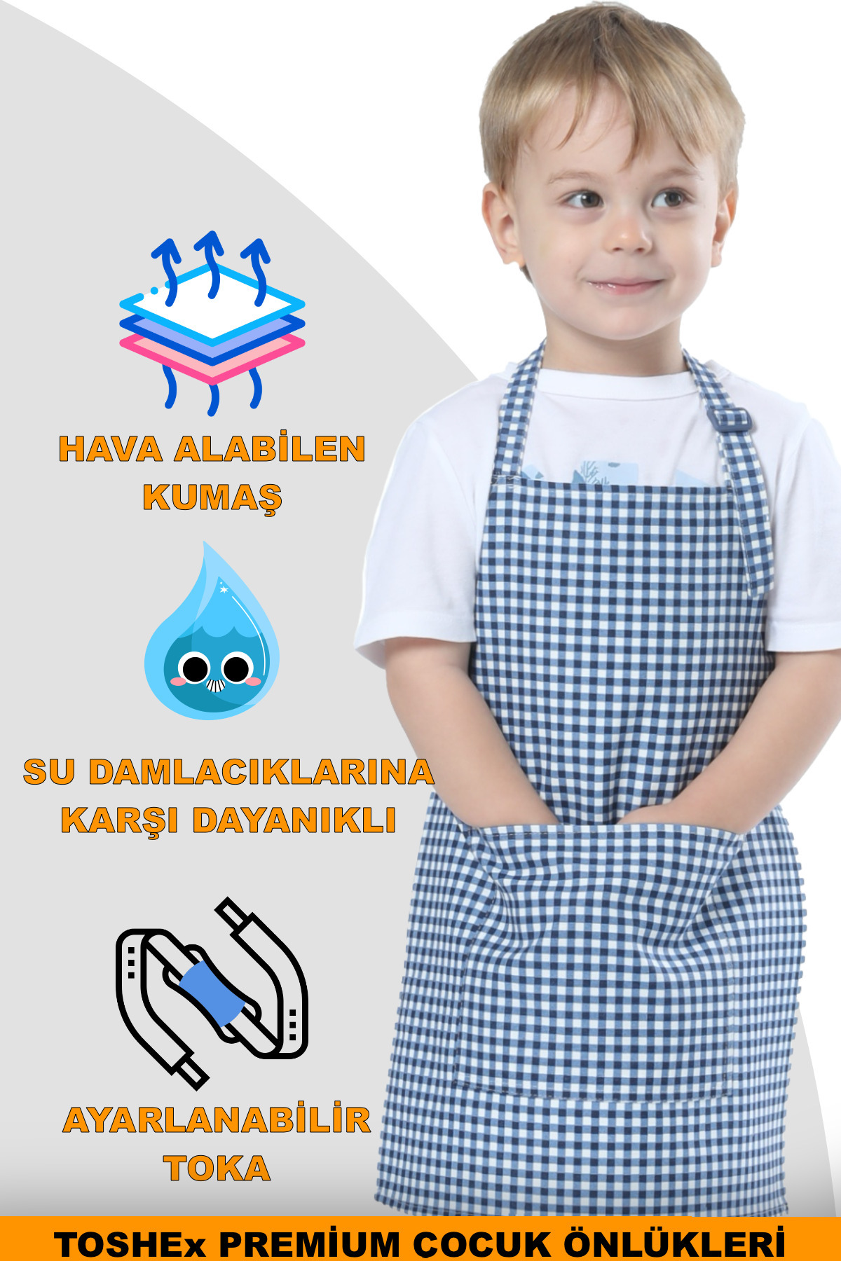 Çocuk Mutfak Önlüğü, Suya Dayanıklı Etkinlik Önlüğü 6-12 yaş Aktivite Önlüğü Turkuaz Ve Beyaz