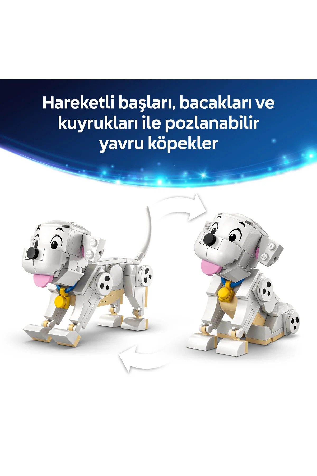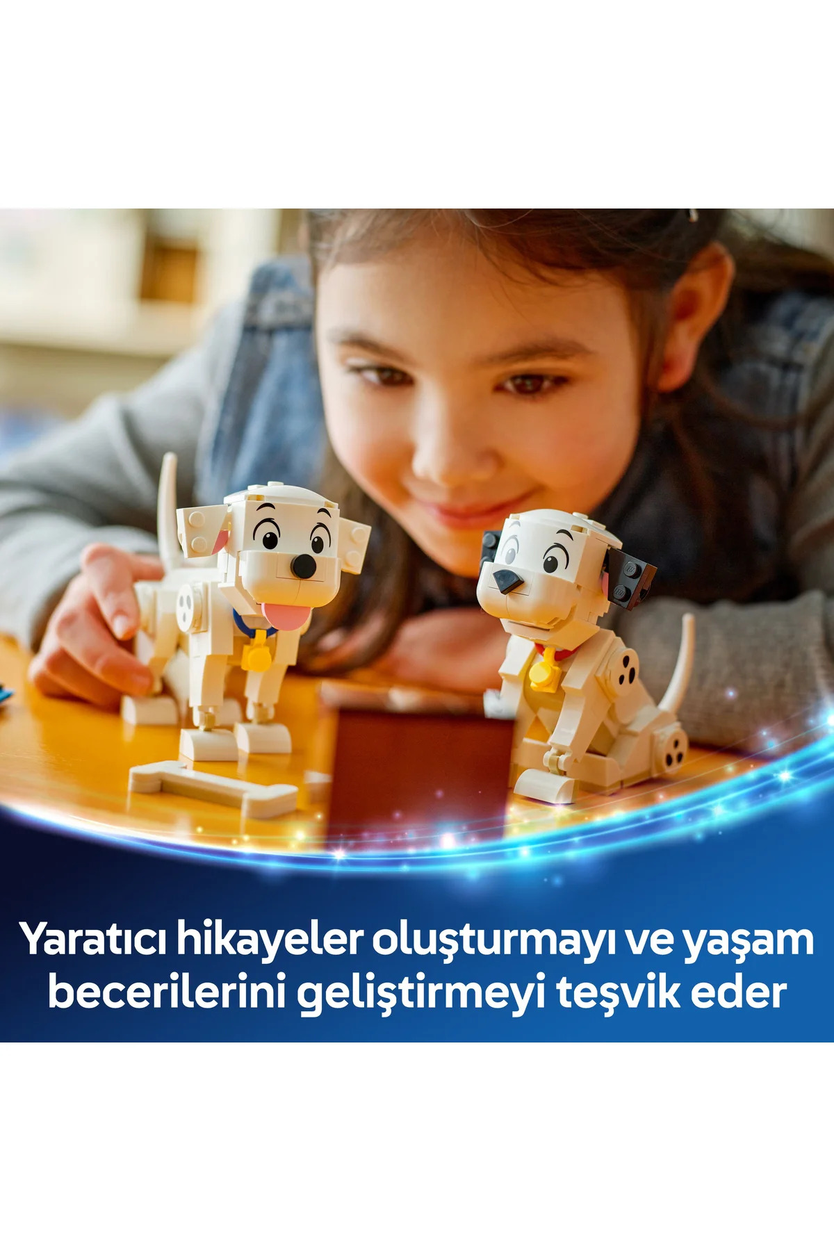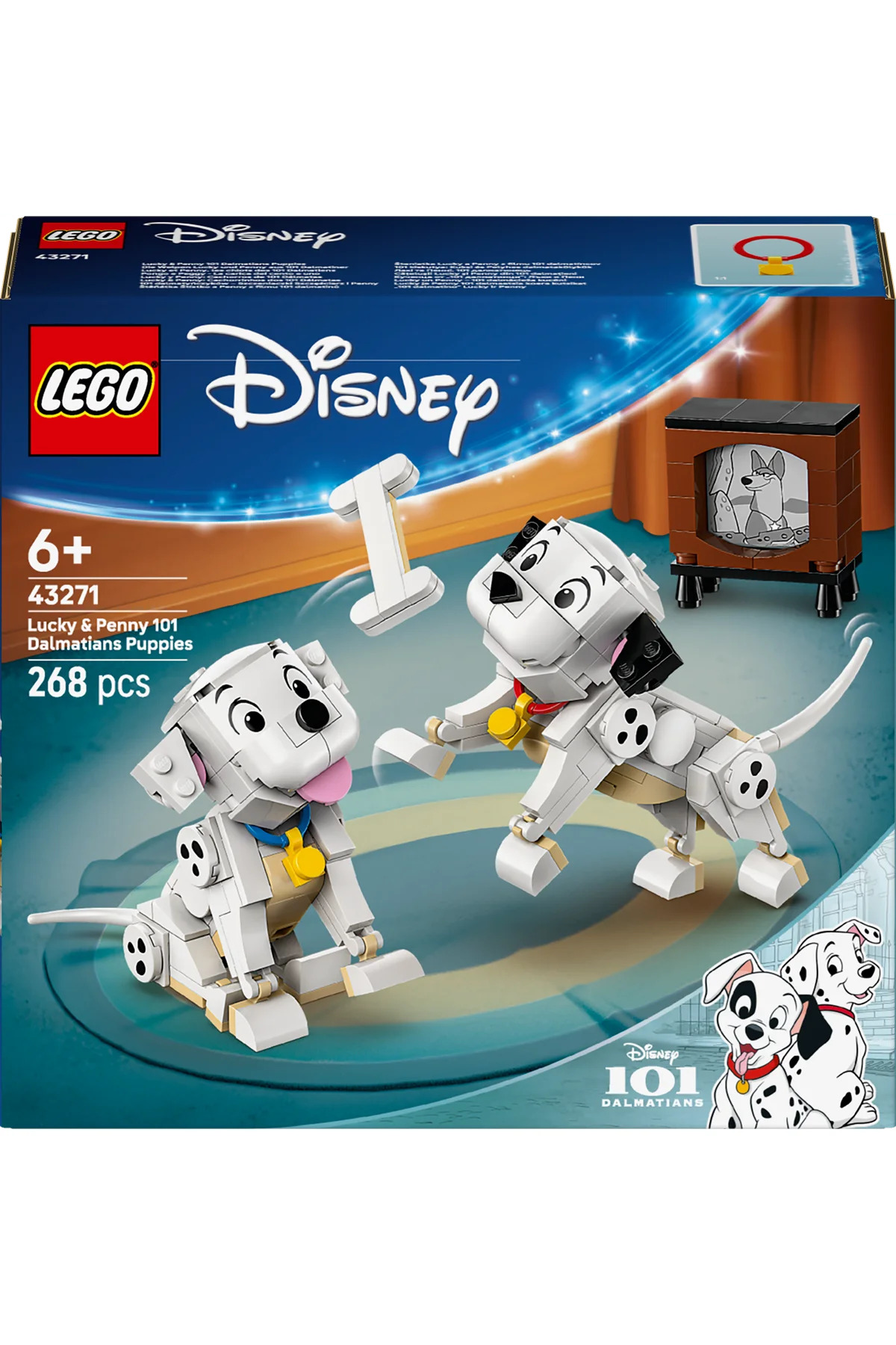 Bu LEGO Disney yavru köpek yapım oyuncağındaki Lucky ve Penny 101 Dalmaçyalı Köpek Yavruları (43271) ile 6 yaş ve üzeri kız ve erkek çocukları veya hayvanseverleri sevindirin. Oyun seçenekleriyle dolu bu yapım oyuncağı, Disney klasiği 101 Dalmaçyalı’dan 2 Dalmaçyalı yavru köpek karakterinin yanı sıra parçalarla yapılan oyuncak kemik ve küçük bir televizyon içerir. LEGO Disney yavru köpek karakterlerinin başları, bacakları ve kuyrukları hareket edebilir ve çeşitli şekillerde pozlara ayarlanabilir. Bu sevimli inşa edilebilen oyun seti, kız ve erkek çocuklarla hayranlar için güzel bir Disney hediyesi fikridir. Serideki diğer LEGO Disney yapım setleriyle (ayrı satılır) uyumludur ve seyahatte oynaması kolaydır. Ayrıca şirin köpekleri seven yetişkin Disney hayranları, genç bir hayrana eşlik ederek ileri düzey arkadaş seti inşa edebilir (101 Dalmaçyalı Köpek Yavrusu Yetişkinler için yapım seti, ayrı satılır). Çocuklar ayrıca modelleri 3 boyutlu yakınlaştırıp döndürebilecekleri, setleri kaydedebilecekleri ve ilerlemeyi takip edebilecekleri LEGO Builder uygulamasıyla kolay ve sezgisel bir yapım macerası yaşayabilir. Bu yapım setinde 268 parça bulunur.