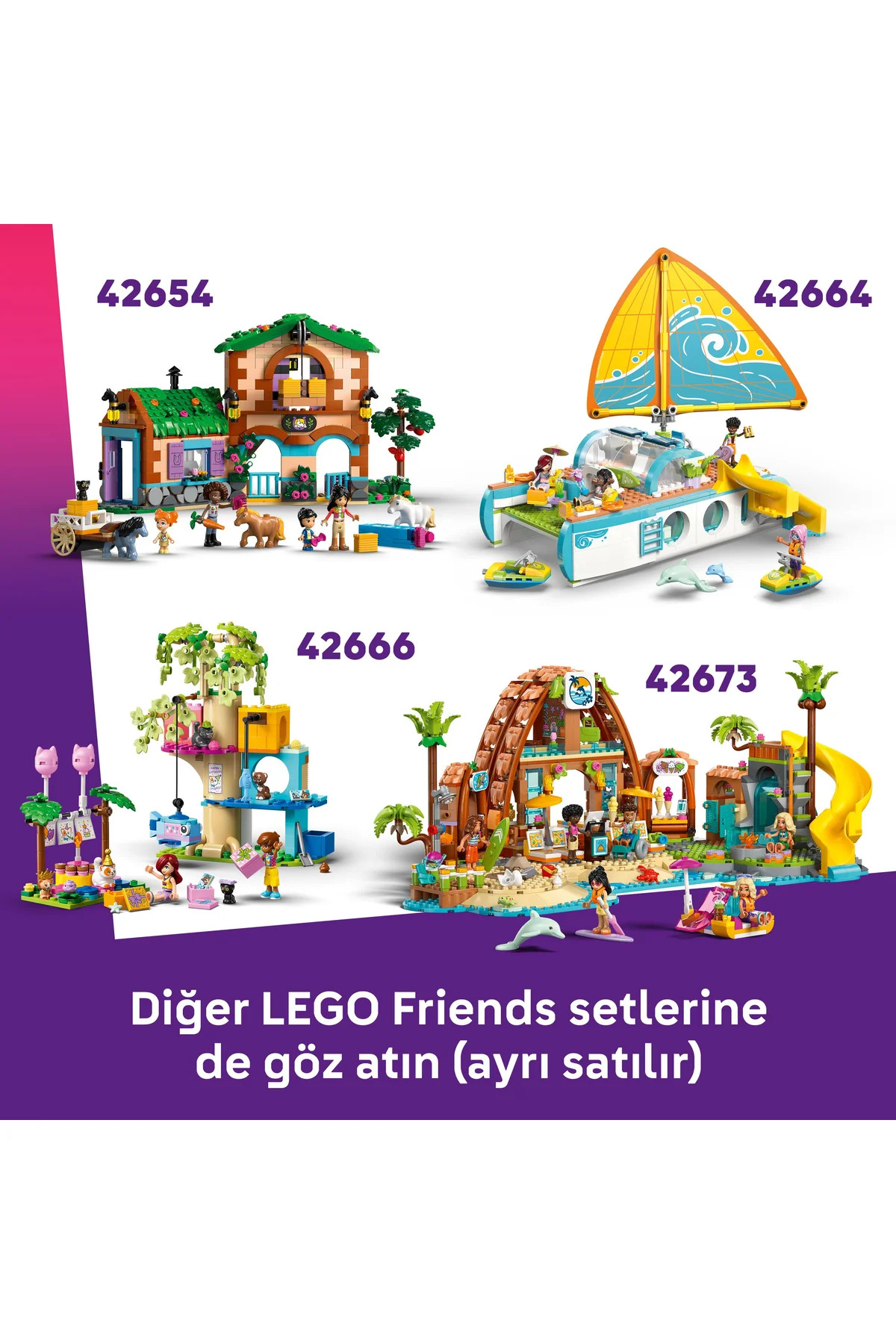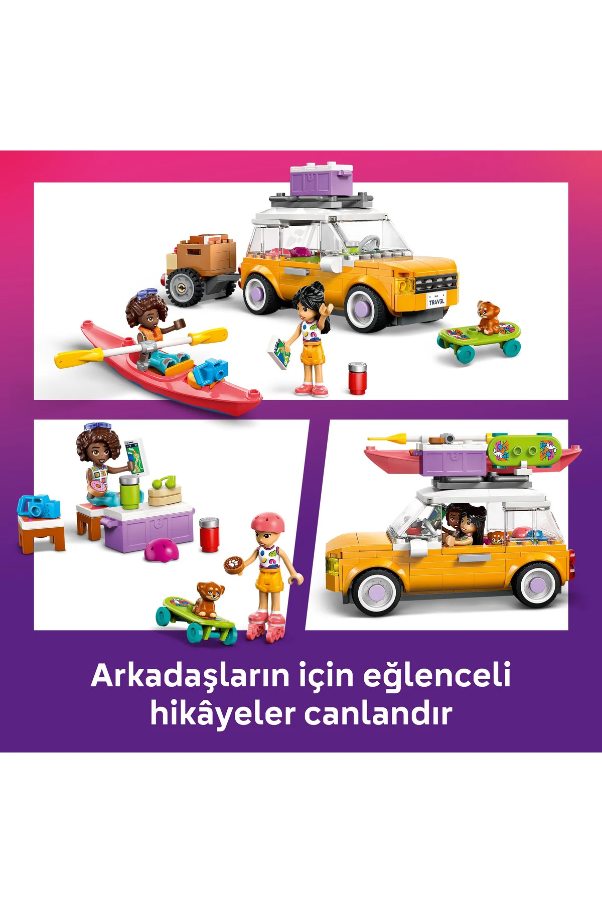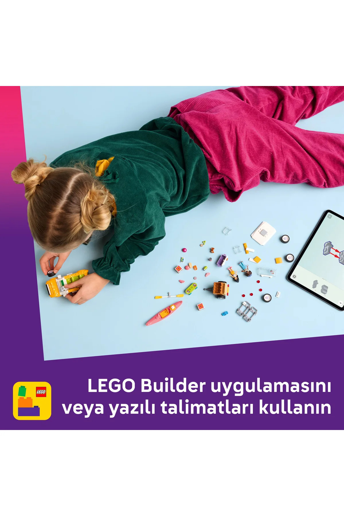 6 yaş ve üzeri kız ve erkek çocuklar için LEGO Friends Arkadaşlık Seyahat Arabası (42659) yapım setiyle çocuklara macera dolu bir dünyanın kapılarını açın. Bu aksiyon dolu sette römorklu bir araba, 2 LEGO Friends mini bebek, sevimli bir yavru köpek figürü ve eğlenceli oyun zamanlarını teşvik eden çok sayıda aksesuar var. Liann ve Aliya'nın yolculukta gereken her şeyi arabaya ve ayrılabilir römorka doldurmasına yardım ederken çocukları bir yaratıcılık yolculuğuna çıkarın. Arkadaşlar önde oturur ve arabanın arkasında köpek Aira için bir koltuk bulunur. Kano, 2 kask, oyuncak kaykay, paten, 2 sandalye ve içinde sandviç, donut, kurabiye, kiraz ve evcil hayvan atıştırmalığı bulunan soğutucu gibi aksesuarlar içerir. Atıştırma zamanı geldiğinde, soğutucu piknik masası olarak da kullanılabilir. LEGO Friends evreninde daha fazla sosyal-duygusal yapım oyuncağı (setler ayrı satılır) keşfedin. Bu yapım seti, sezgisel yapım için LEGO Builder uygulamasıyla birlikte gelir. Burada çocuklar, modelleri inşa ederken yakınlaştırabilir ve döndürebilir, setleri kaydedebilir ve ilerlemeyi takip edebilir.