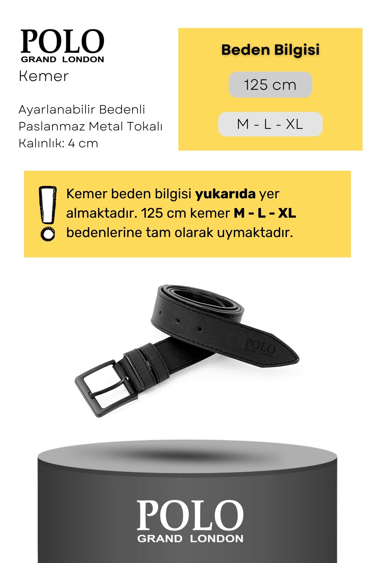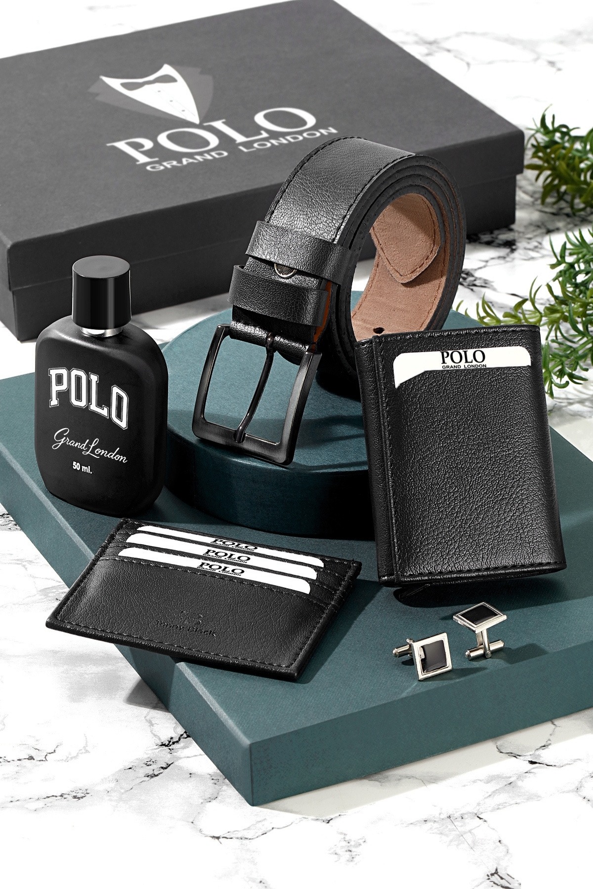 POLOGRAND London Luxury Leather Serisi 5'li Erkek Otomatik Mekanizmalı Cüzdan + Kartlık+ Parfüm + Kol Düğmesi + Kemer Seti