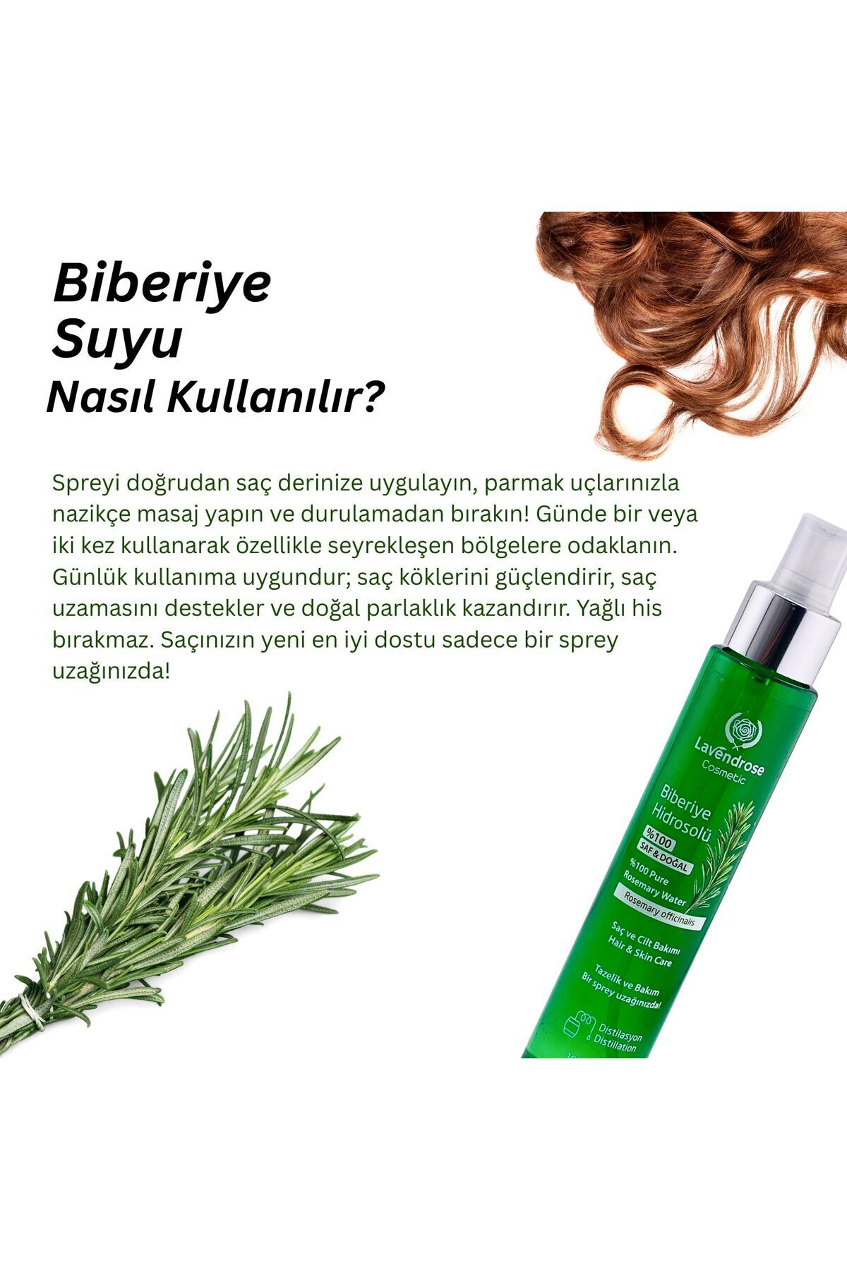 Lavendrose Biberiye Hidrosolü 100 ml – %100 Doğal Saf Biberiye Suyu Cilt ve saç bakımında doğanın gücünü hissedin! Lavendrose Biberiye Hidrosolü, %100 saf biberiye bitkisinden distilasyon yöntemiyle elde edilmiştir.