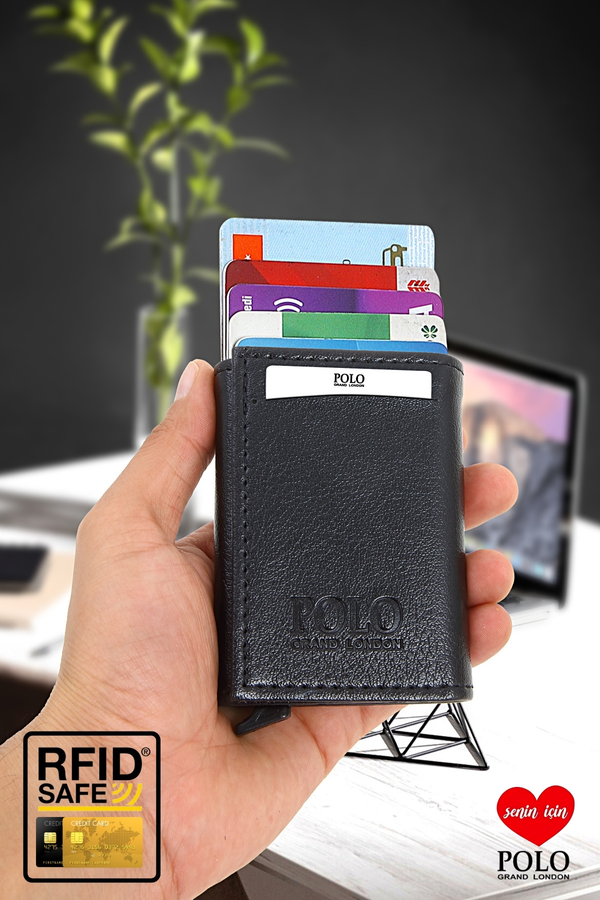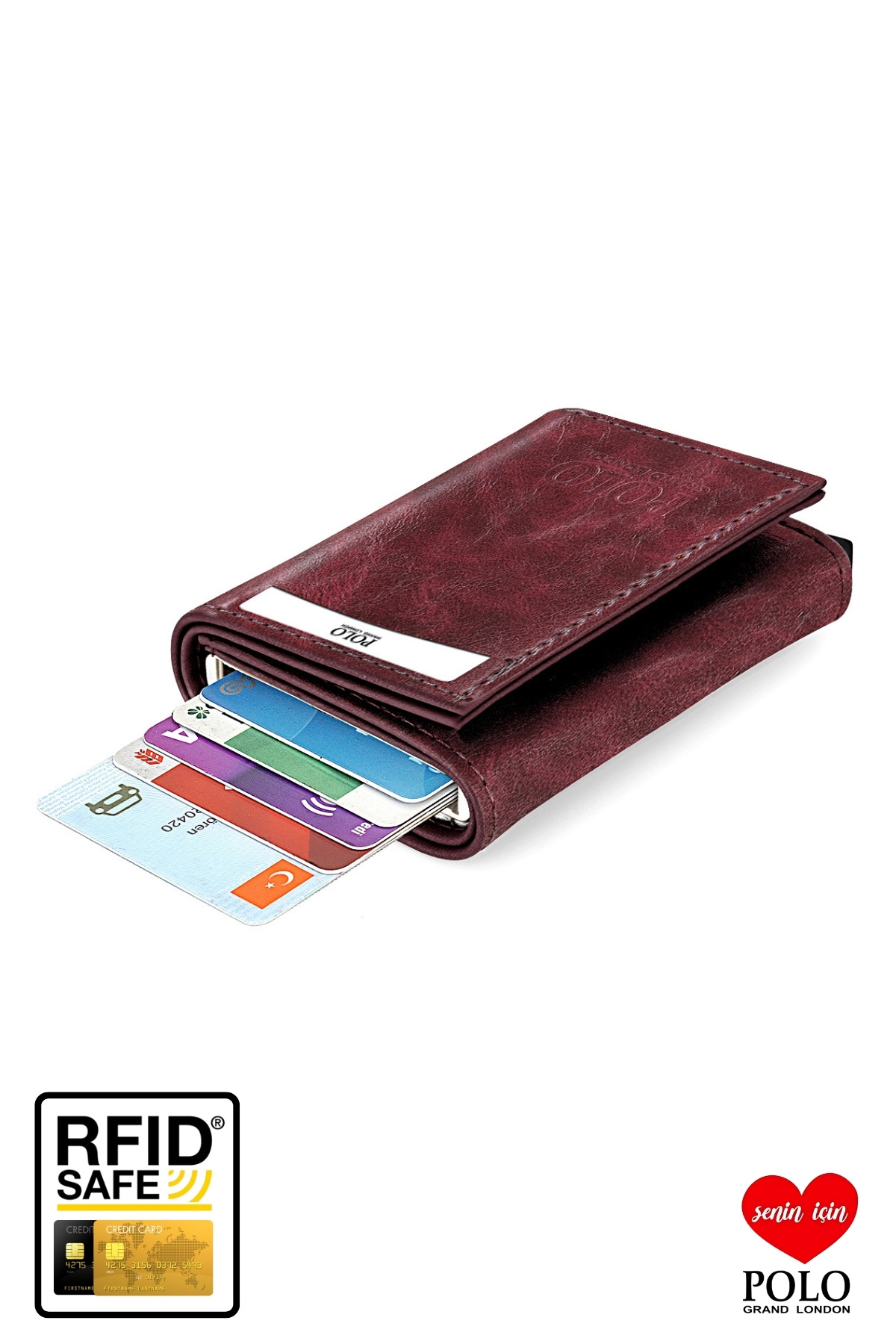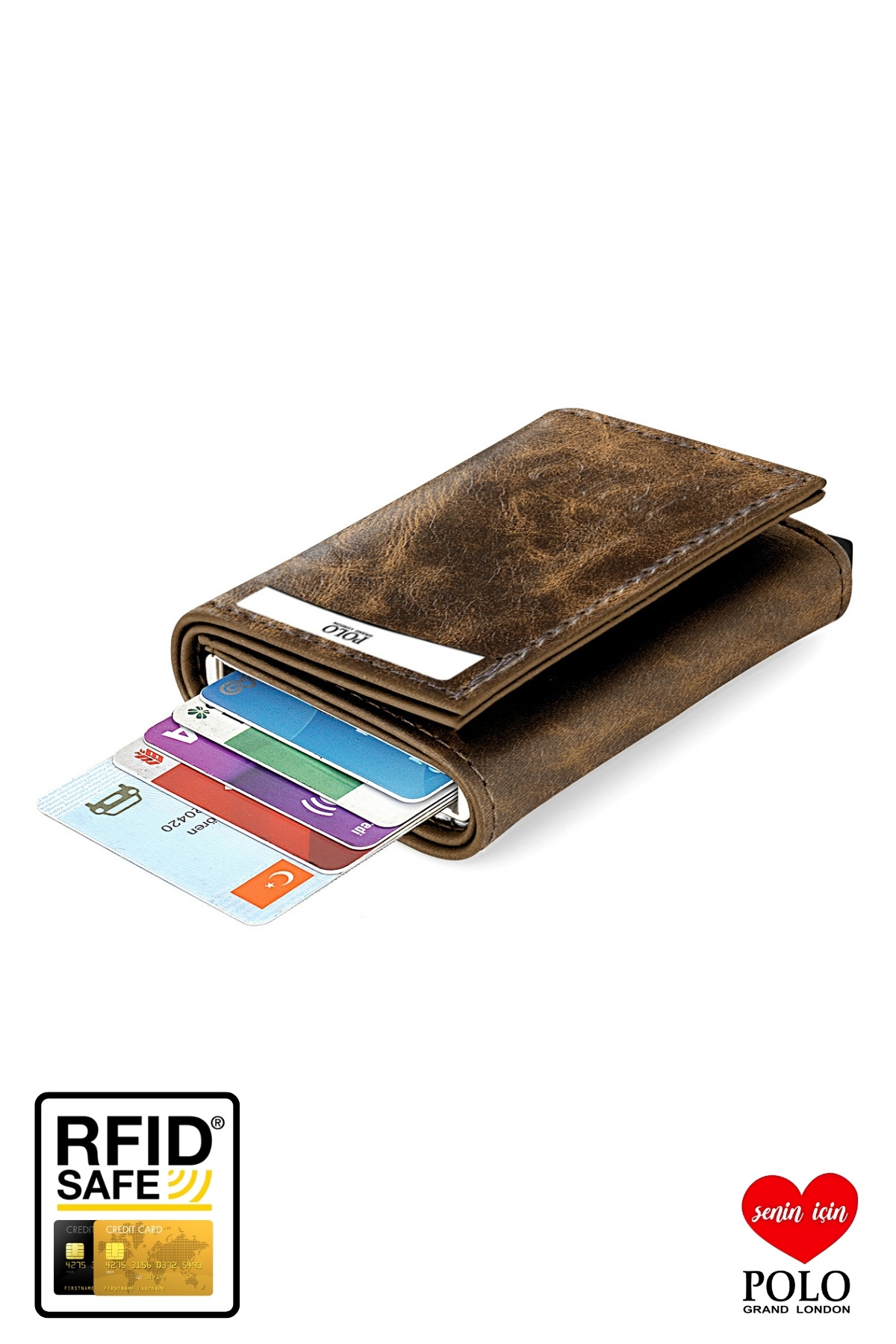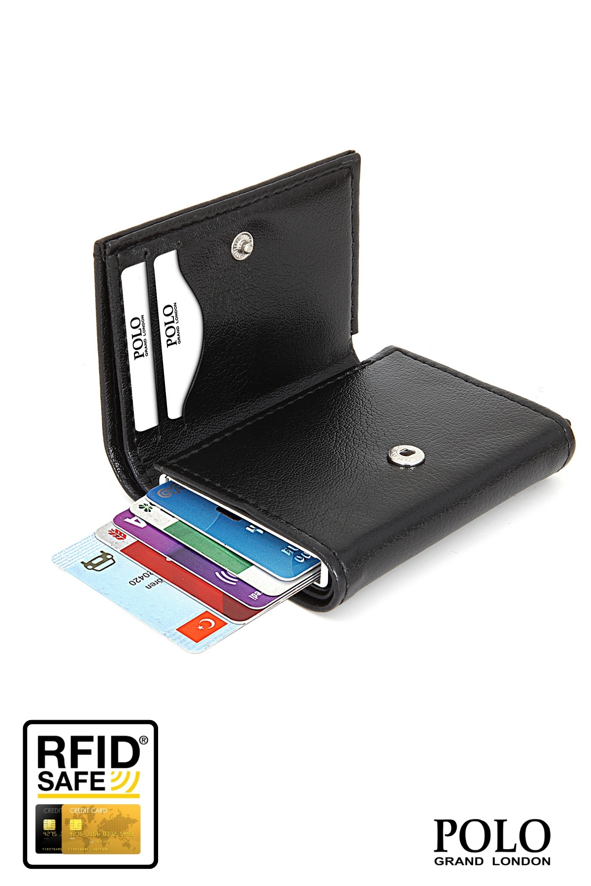 Orijinal POLOGRAND London RFID Korumalı Otomatik Mekanizmalı Hırsızlık Engelleyici Kartlık Cüzdan
