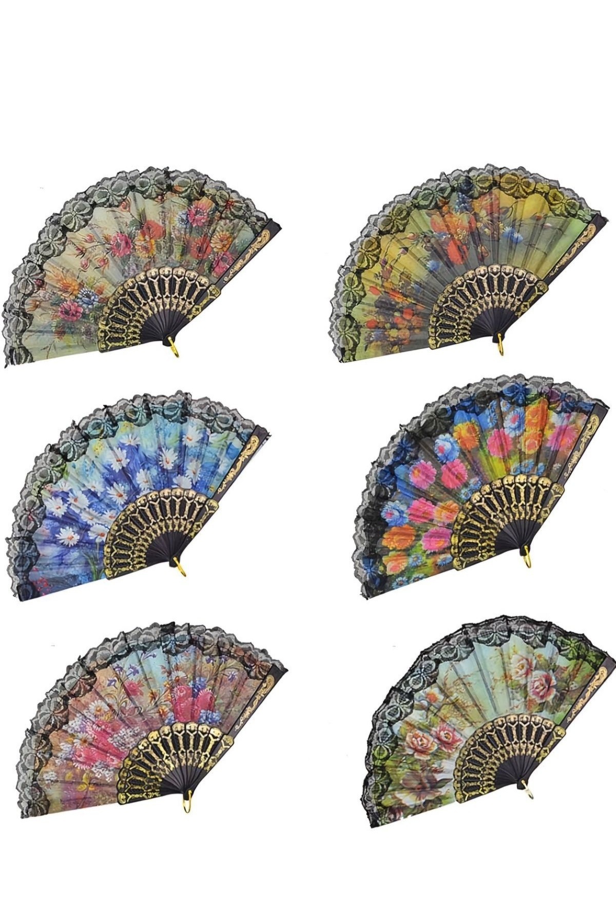 Siyah Renkli Çiçekli Dantelli Katlanır Yelpaze Taşınabilir El Fanı