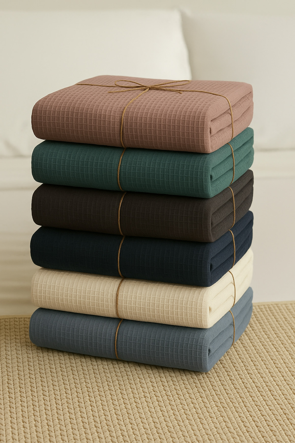 Tek Kişilik Pike Yazlık %100 Pamuklu Terletmez Natural Waffle 160x235 Yazlık Pike