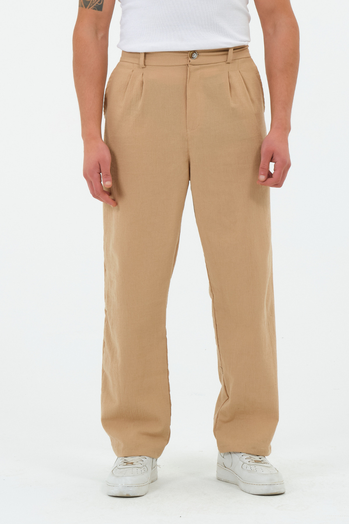 %100 Pamuk Şile Bezi Bol Paça Pileli Baggy Siyah Pantolon