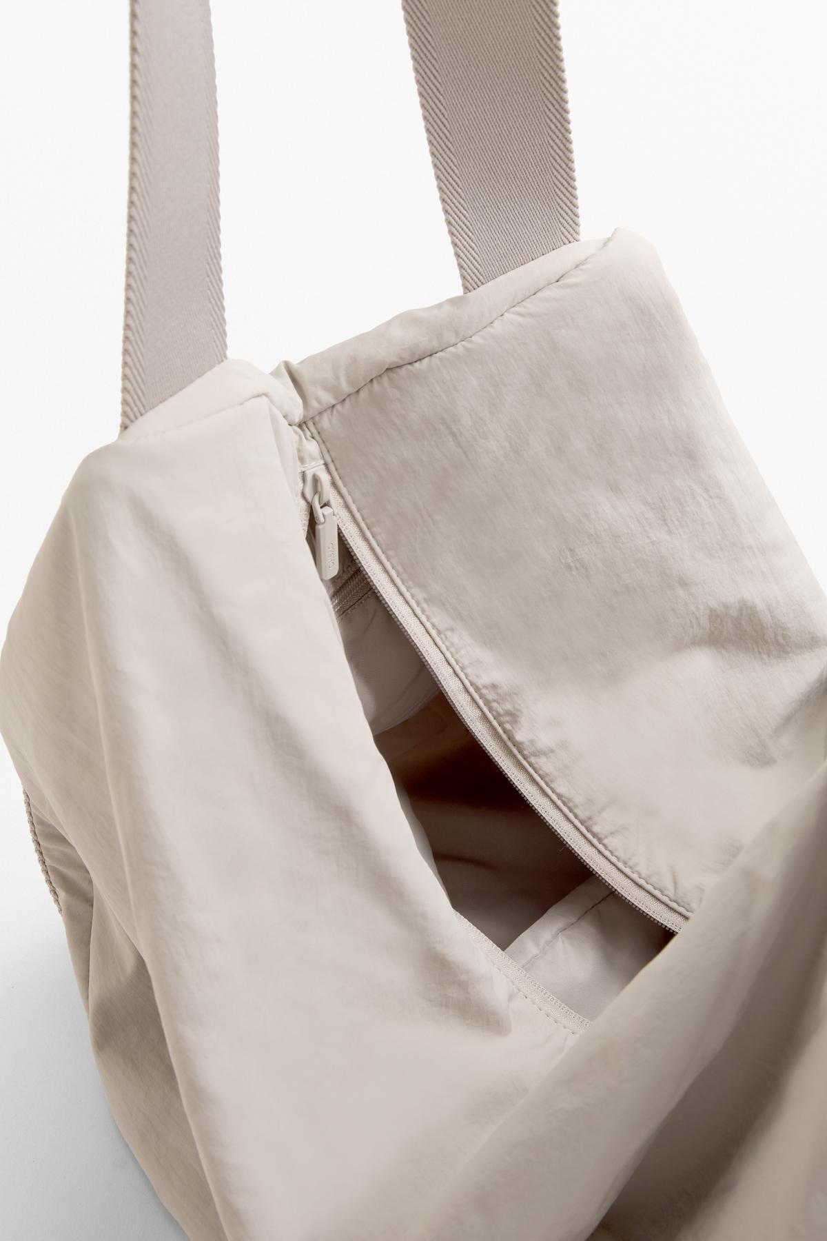 Üst kısmında mat taşımak için oval şekilli spor çantası.