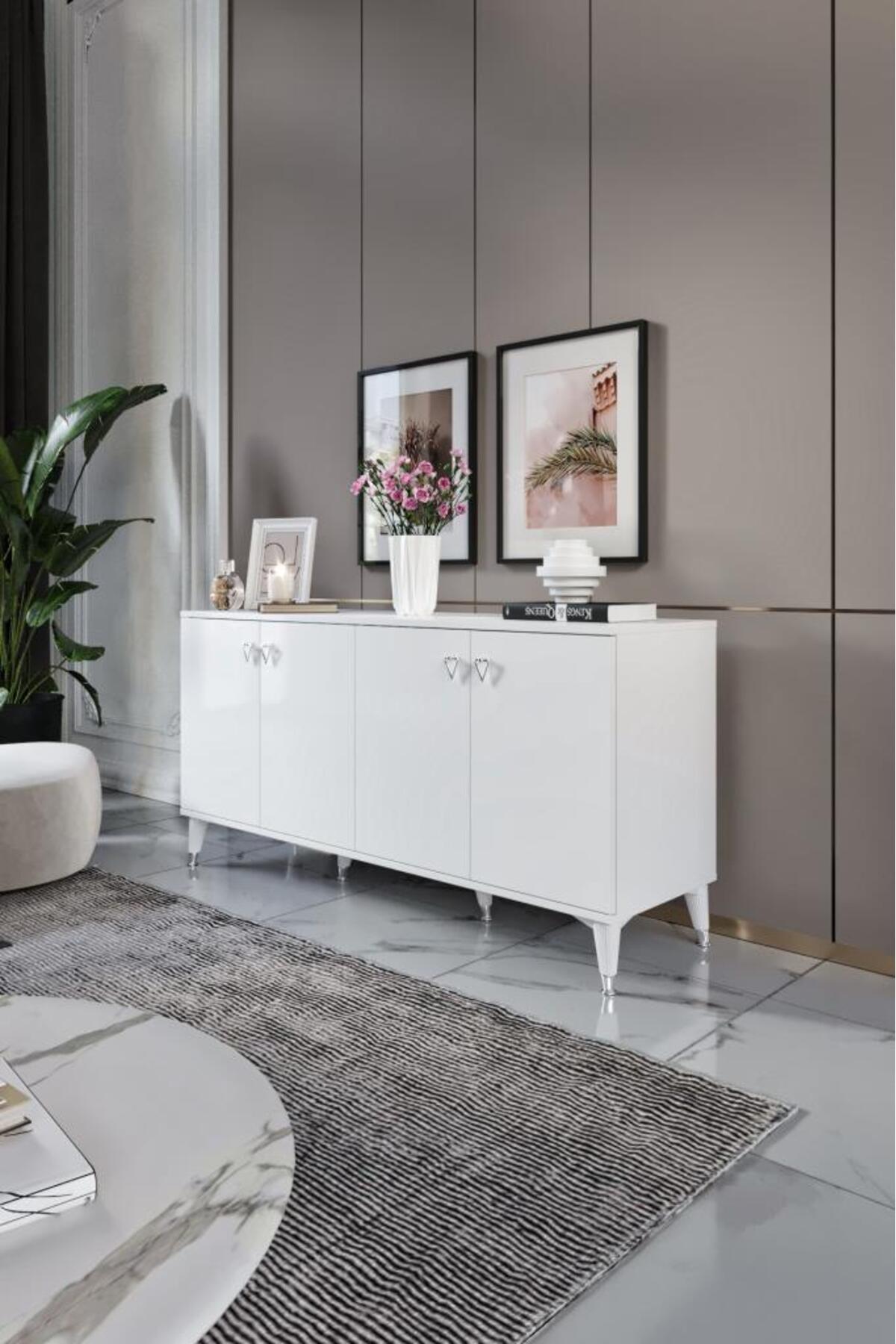 160 cm genişlik, 40 cm derinlik ve 79 cm yükseklik ölçülerinde olan ürün, 4 kapak, 2 raf ve 4 bölmeli yapısıyla geniş depolama alanı sunar.