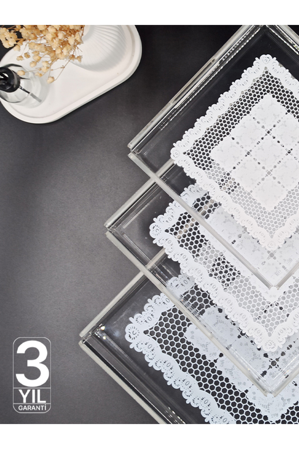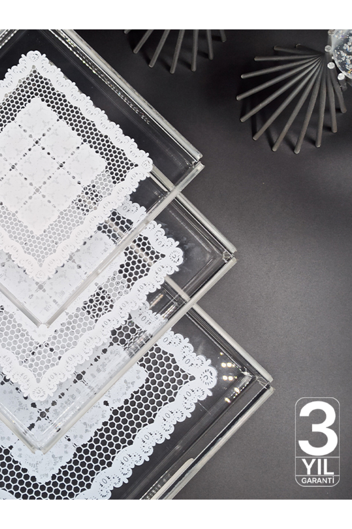 Üçlü Gümüş Dantelli Pleksi Tepsi Seti | Söz & Nişan Sunum Tepsisi | 3 Yıl Garantili