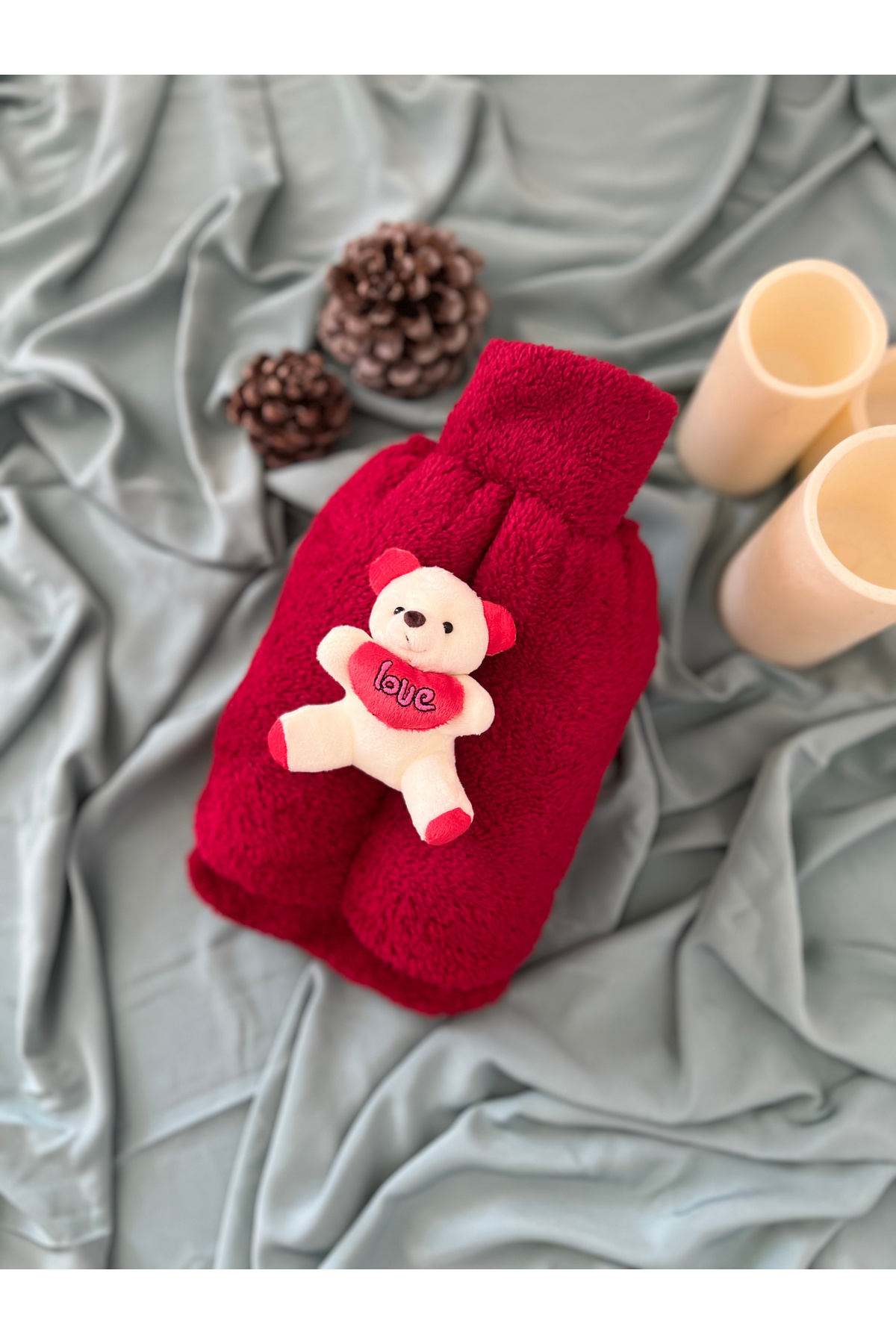 Sıcak Su Torbası Love Yazılı Ayıcık Kırmızı Renkli Welsoft Kumaş Ayak Isıtıcı 2 LT Sıcak Su Torbası