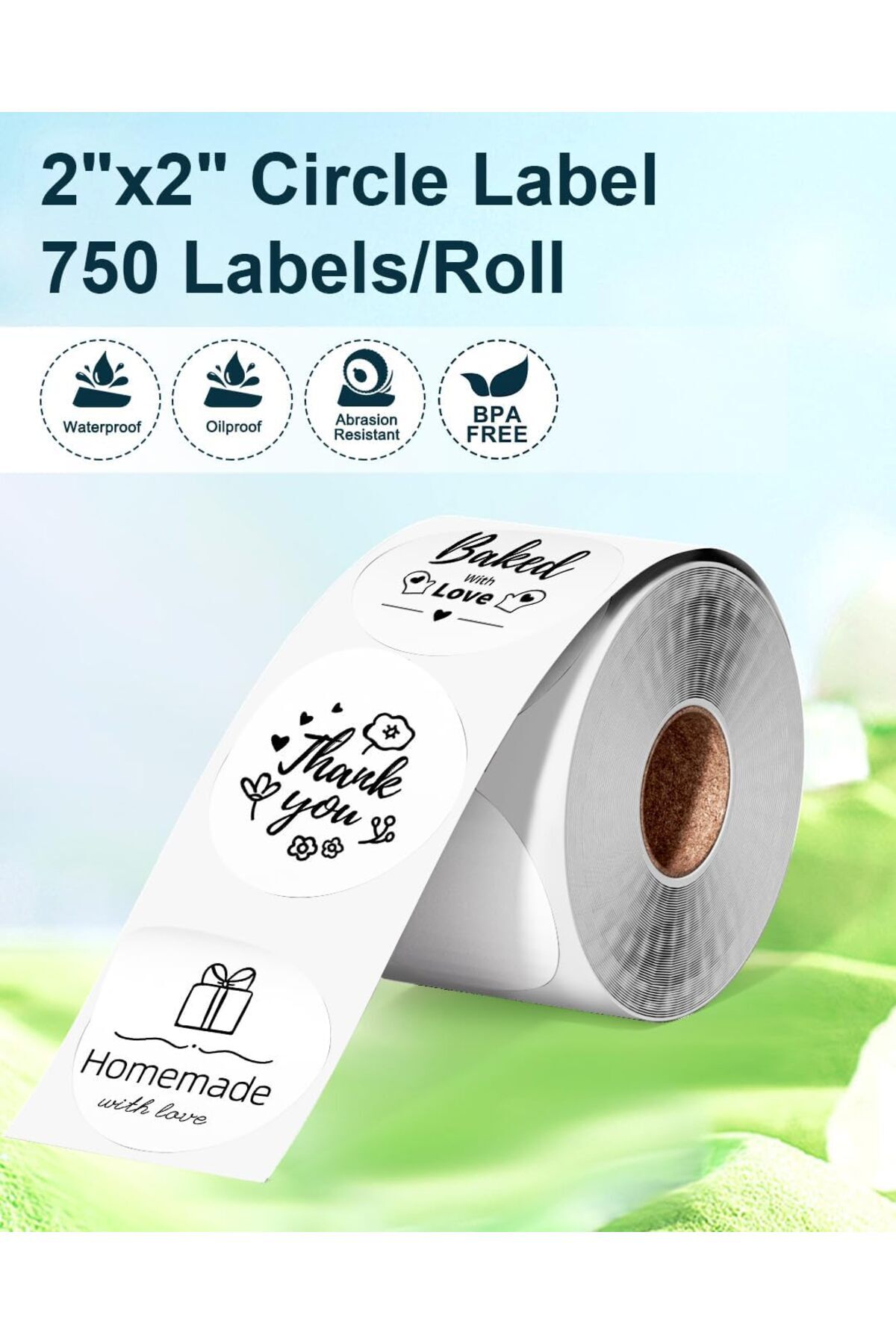 • Phomemo 50,8x50,8mm/750adet Termal Etiket 2x2inç Yuvarlak Beyaz, PM-241-BT, D520-BT için, SLR-2*2-750