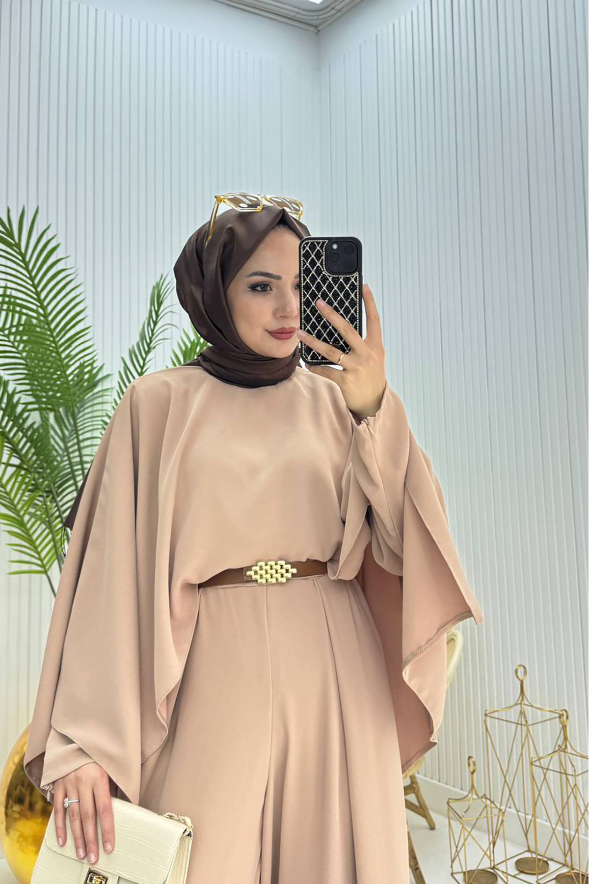 - Zarif bej rengiyle her ortamda şıklığınızı koruyun, tesettür tulum NMS061 ile günlük kullanımınıza uyum sağlayın.