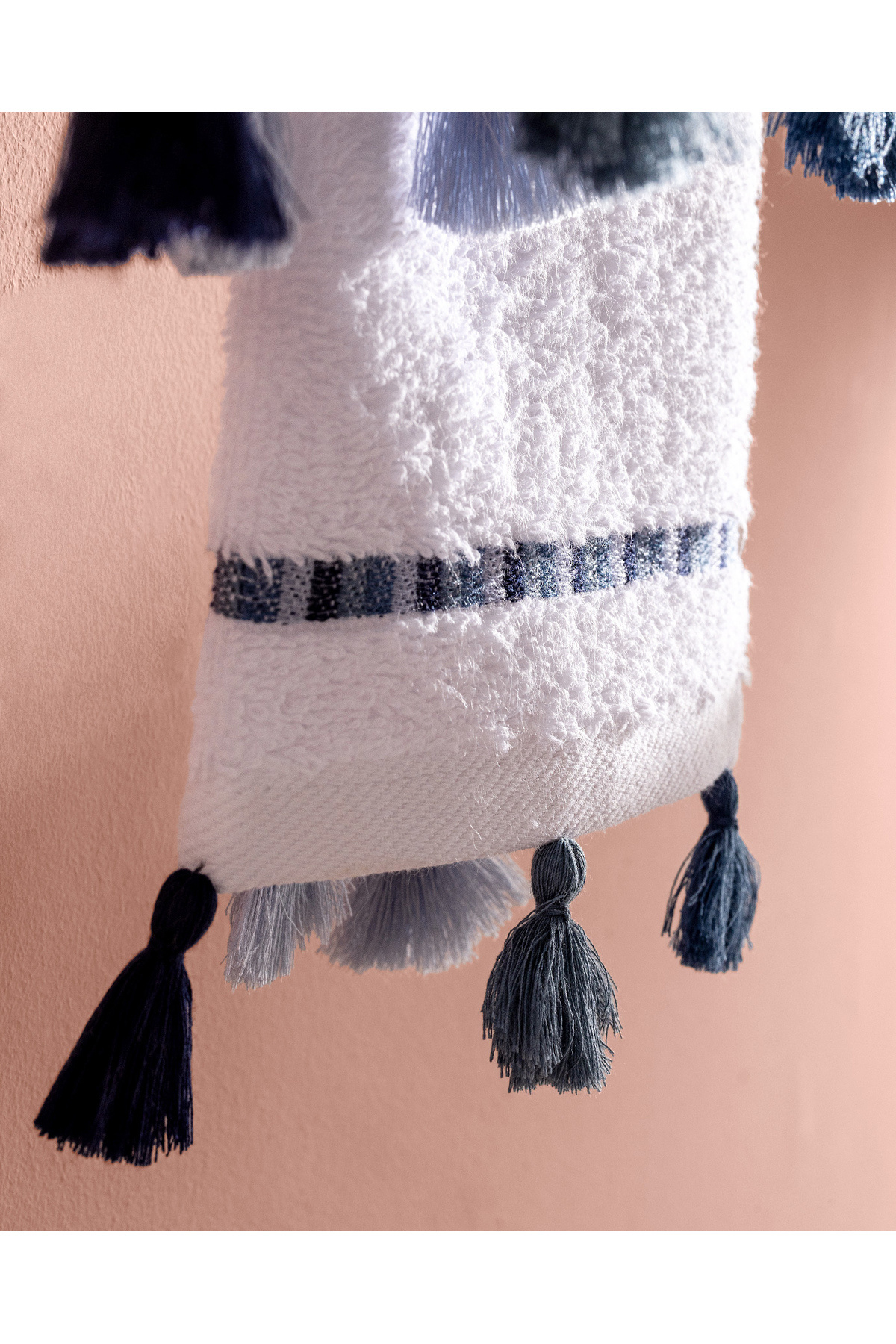 Gland 2'li %100 Pamuk El Havlusu - Beyaz/Lacivert