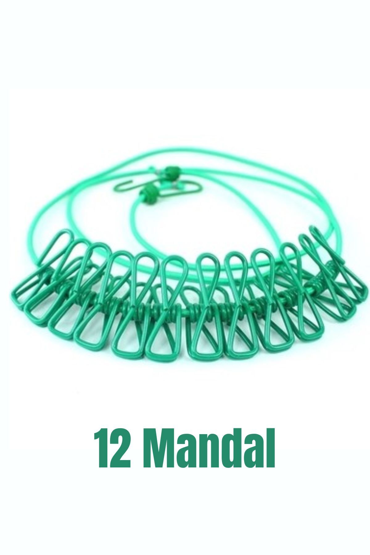 • 12 Mandallı Elastik Çamaşır Aparatı Ipi 185-380 Cm Uzunluk Pratik Çamaşır Asma İpi