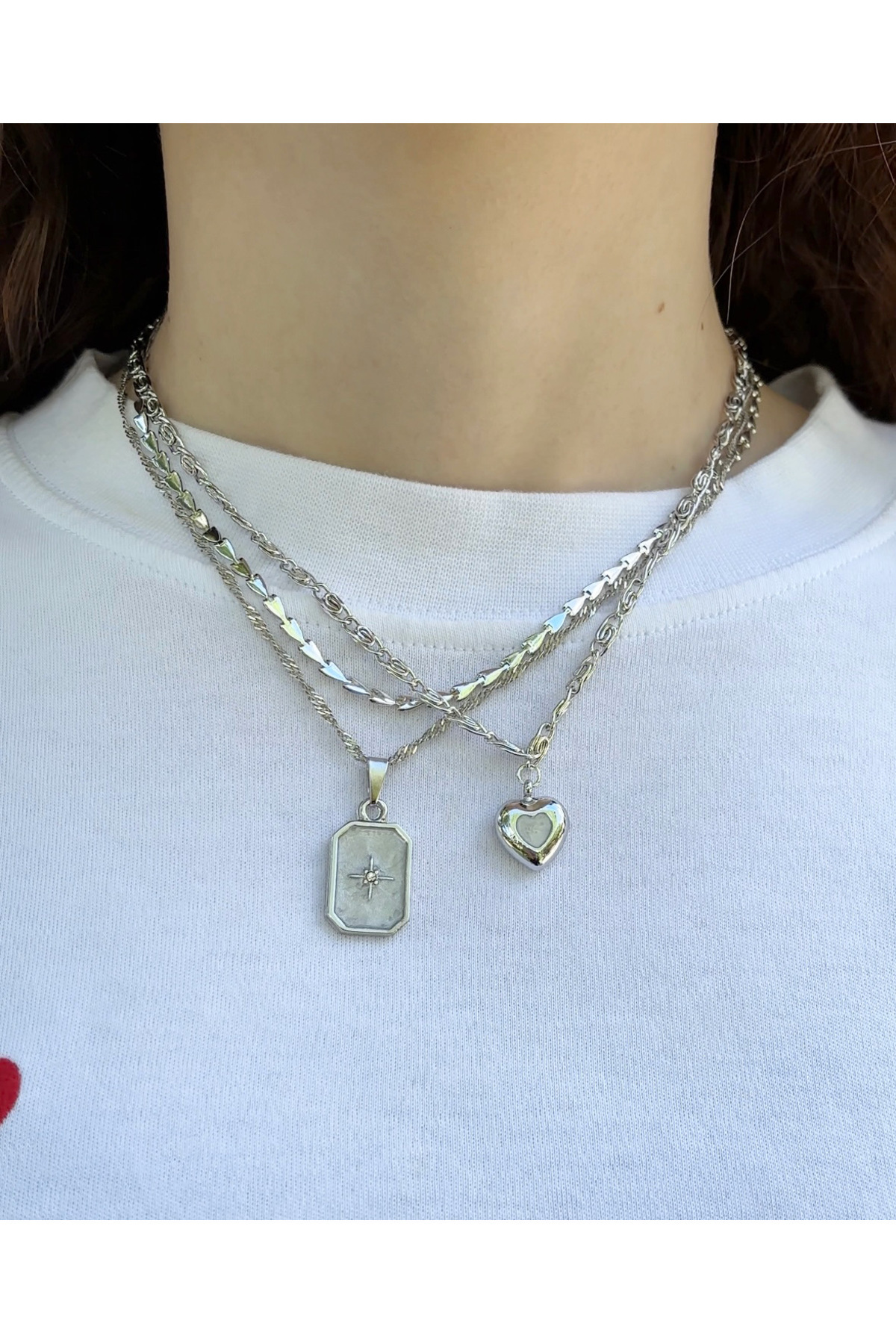 Kadın Gold Renk 3 Adet Mineli Kalp Zincir Kolye Seti