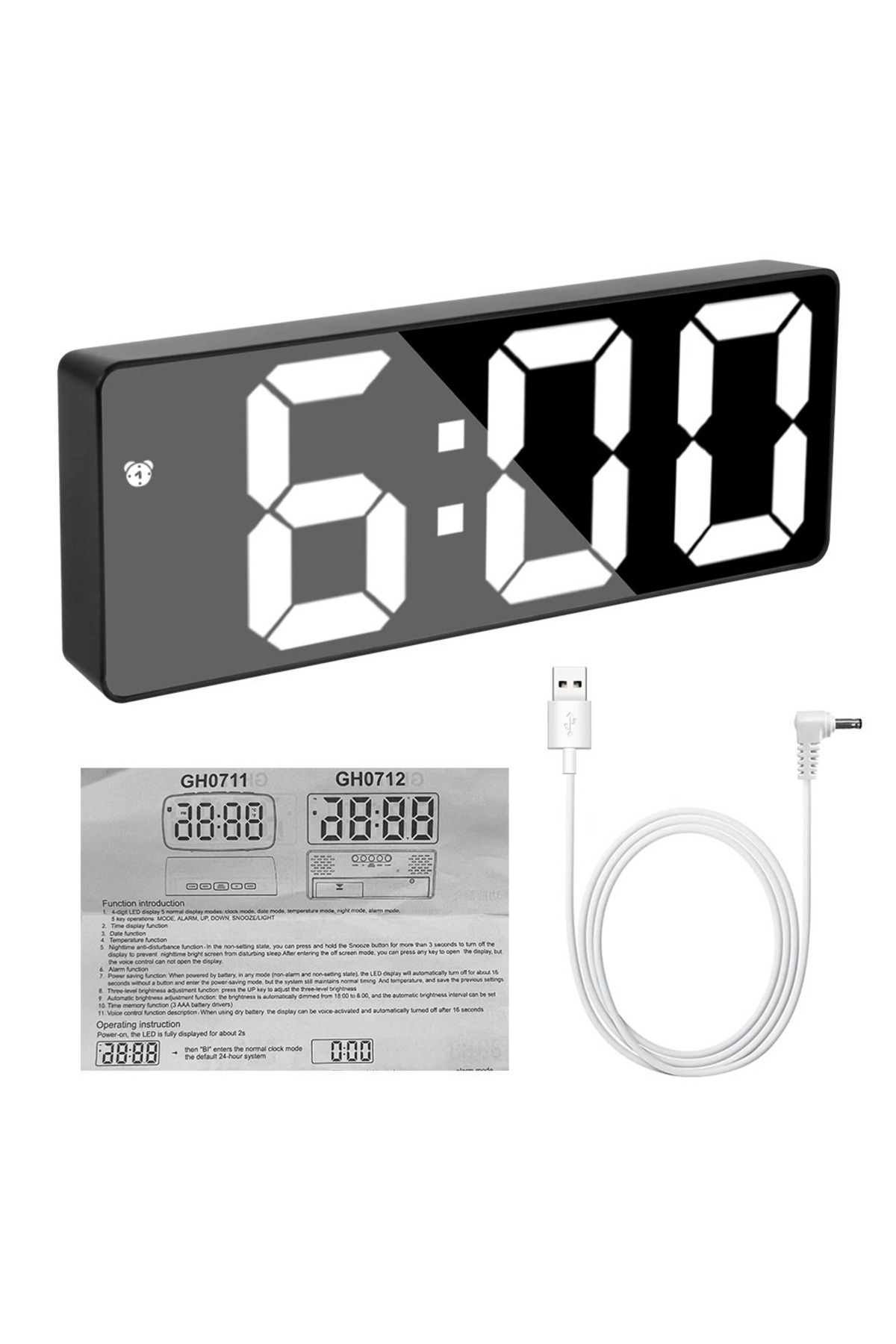 LED Dijital Masa Saati Isı Göstergeli , Alarmlı , Büyük Ekran , Sessiz