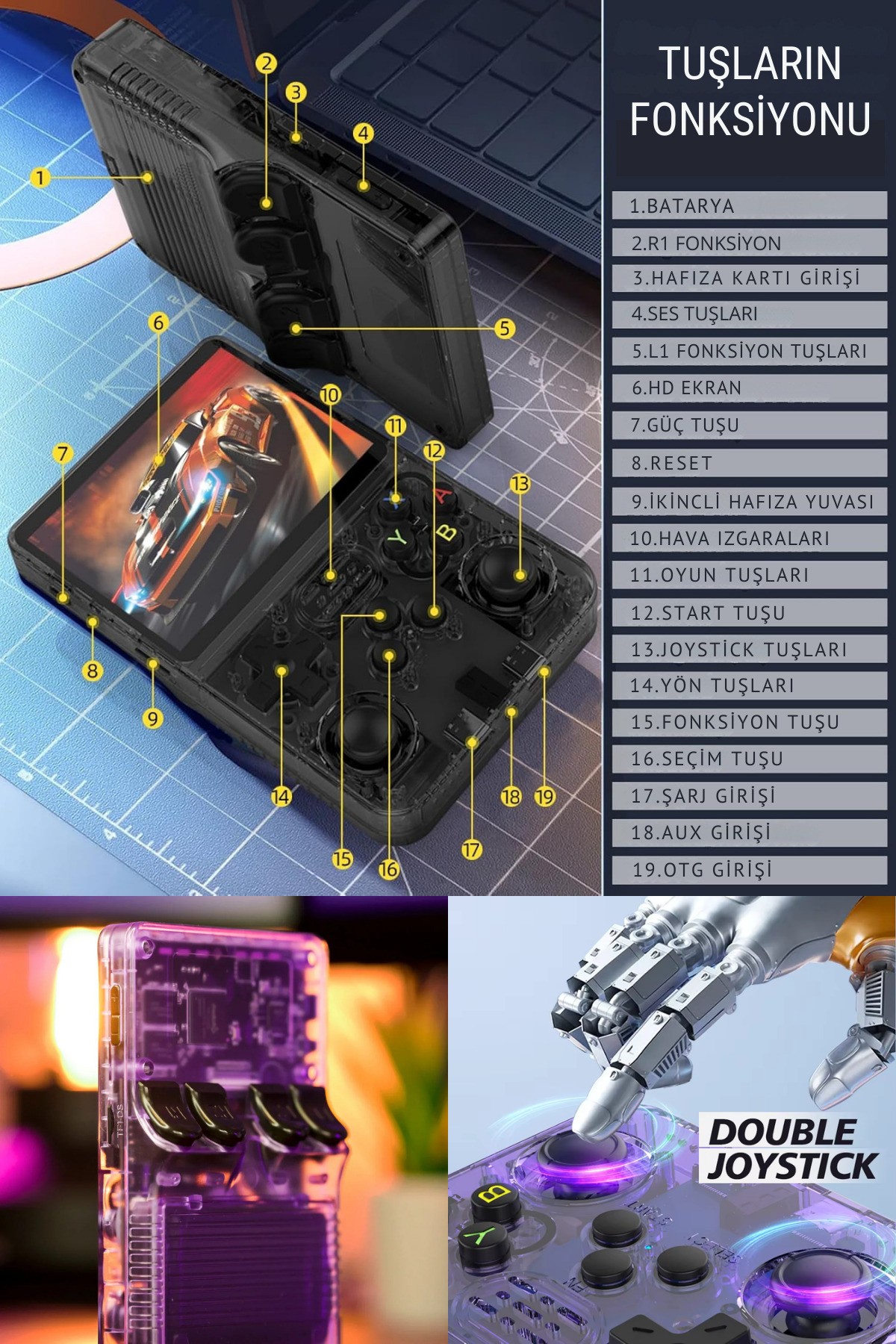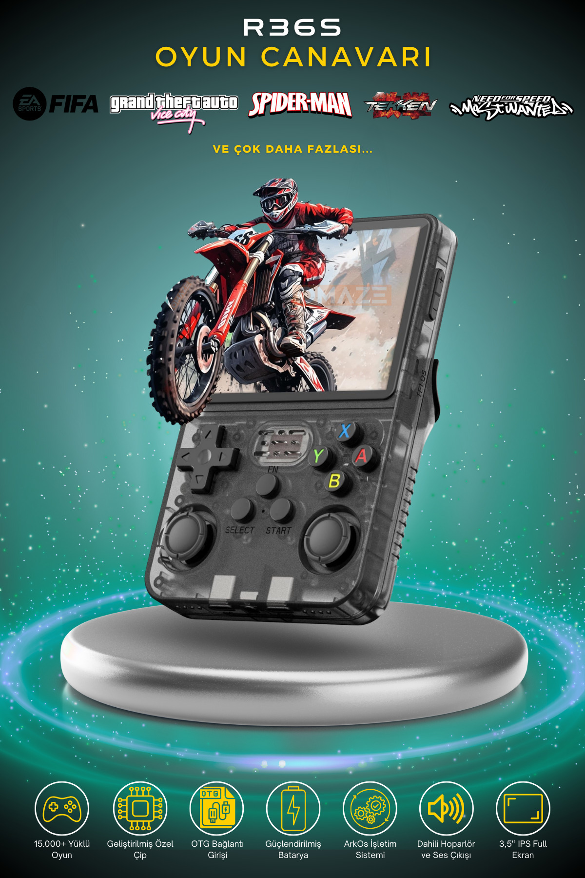 R36S Retro Oyun Konsolu – Nostalji Yeniden Hayat Buluyor! Geçmişin efsanevi oyunlarını cebinizde taşıyın! R36S Retro Oyun Konsolu, sizi çocukluk anılarınıza götürecek 15.000'den fazla klasik oyunla geliyor.