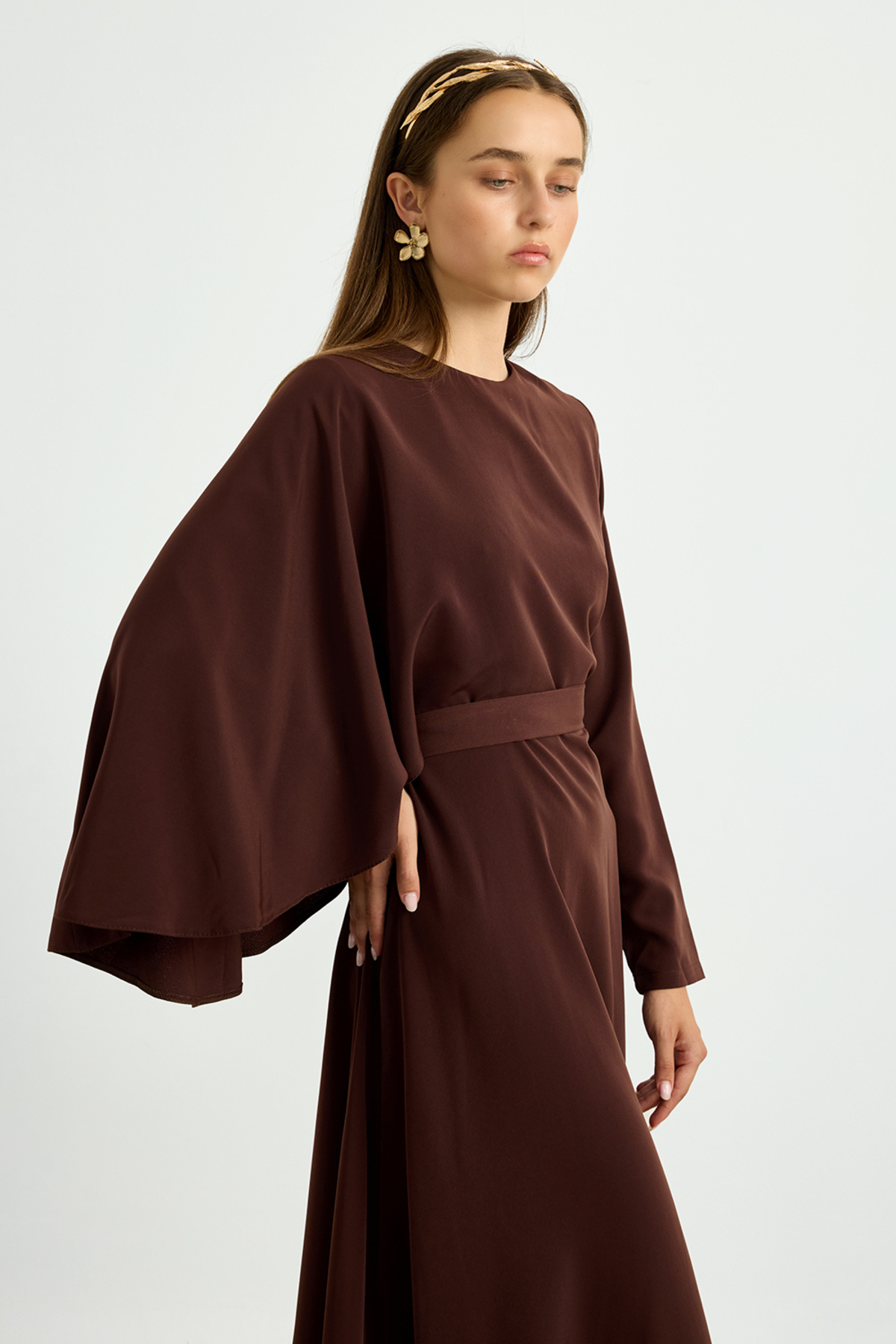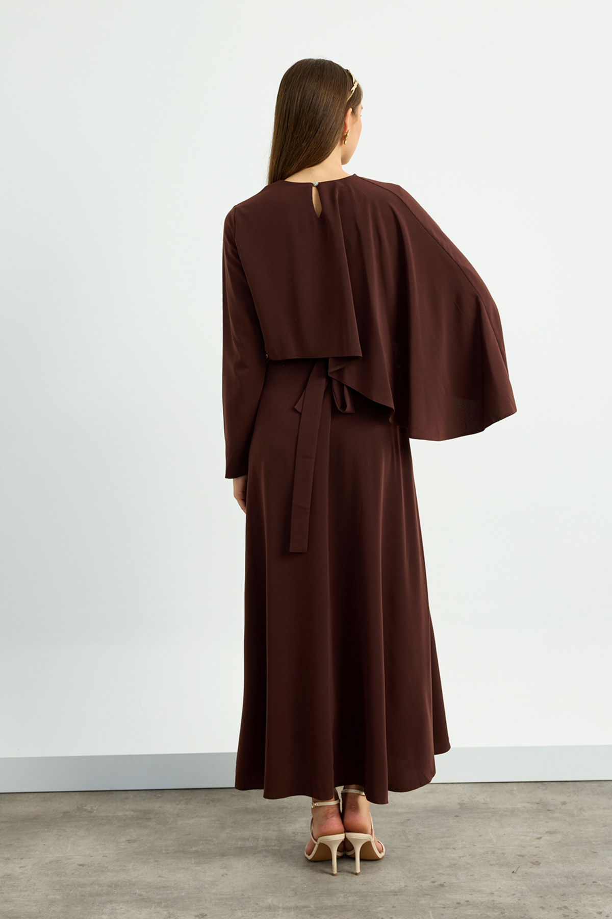 Kahverengi Pelerin Detaylı Elbise