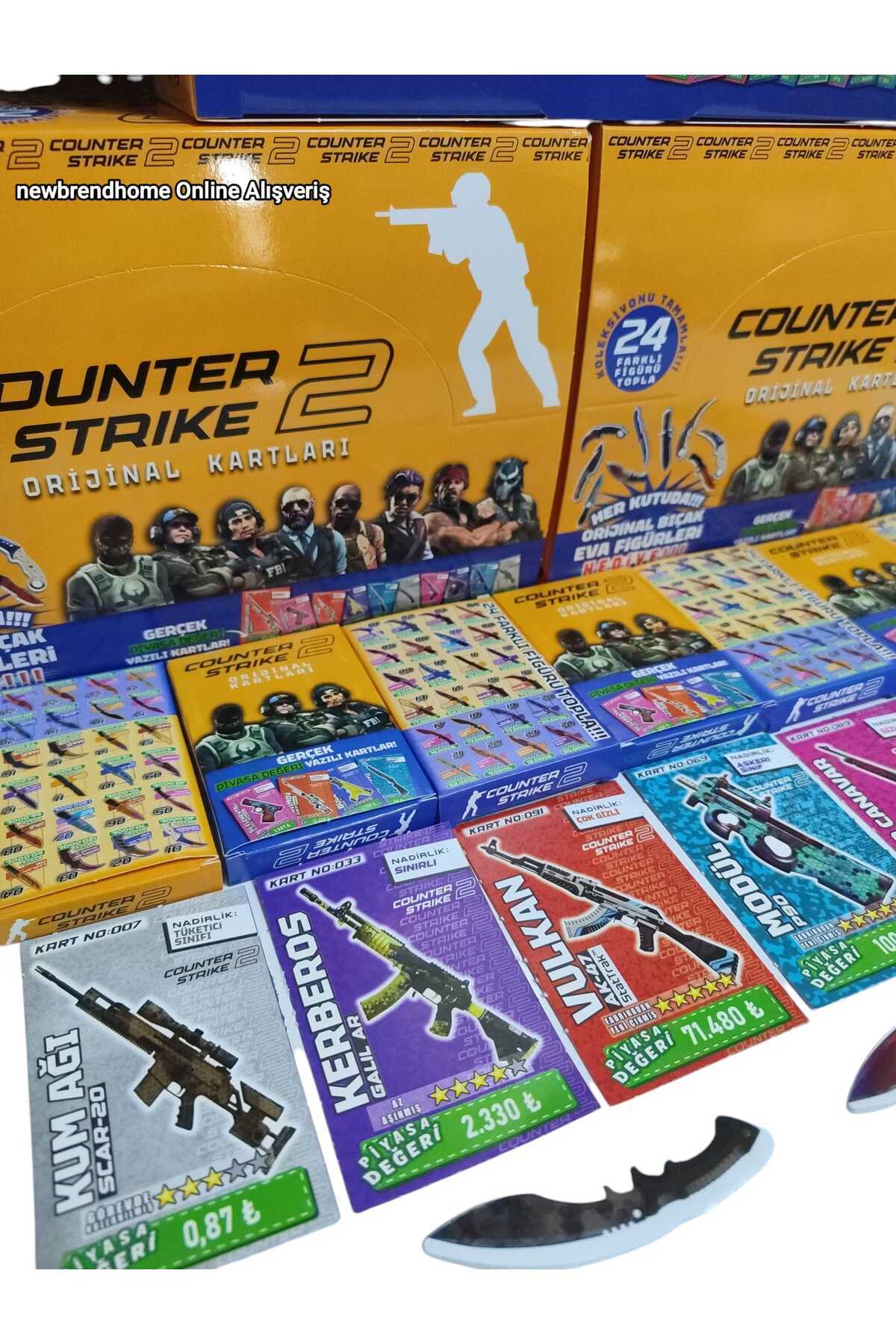 Counter-Strike 2 Oyun Kağıtları (5 Mini Kutu 20 Adet Kart 5 Adet Eva Bıçak Figürleri)