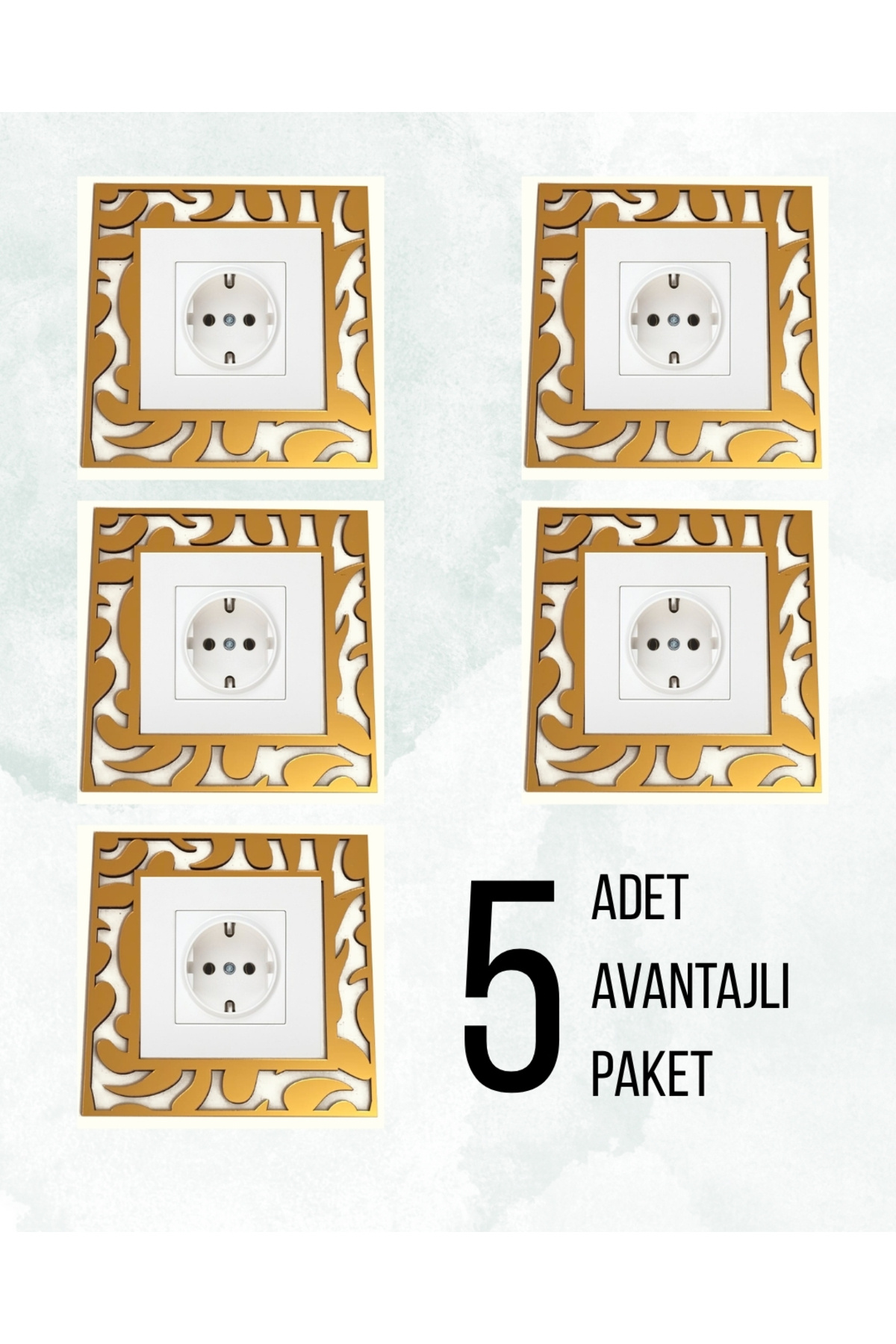 Dekoratif Desenli Priz Çerçevesi – Ahşap Duvar ve Priz Süsü Seti 5'li