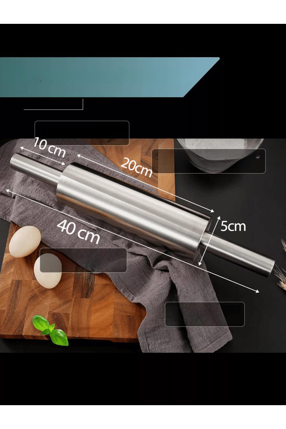360 D Dönerli Çelik Merdane - Profesyonel Hamur Açma Merdanesi - 304 Paslanmaz Çelik