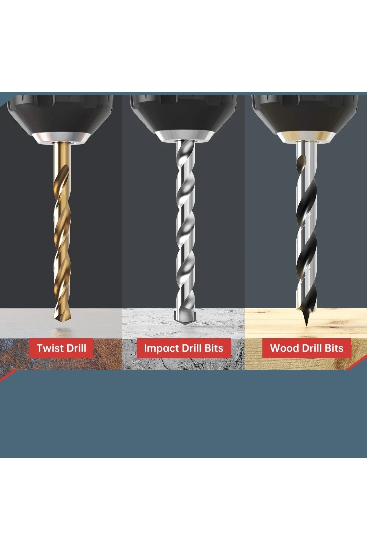 Bu profesyonel matkap ucu seti Profesyonel matkap uç seti, metal, ahşap ve beton yüzeylerde güçlü ve hassas delme işlemleri için tasarlanmıştır.