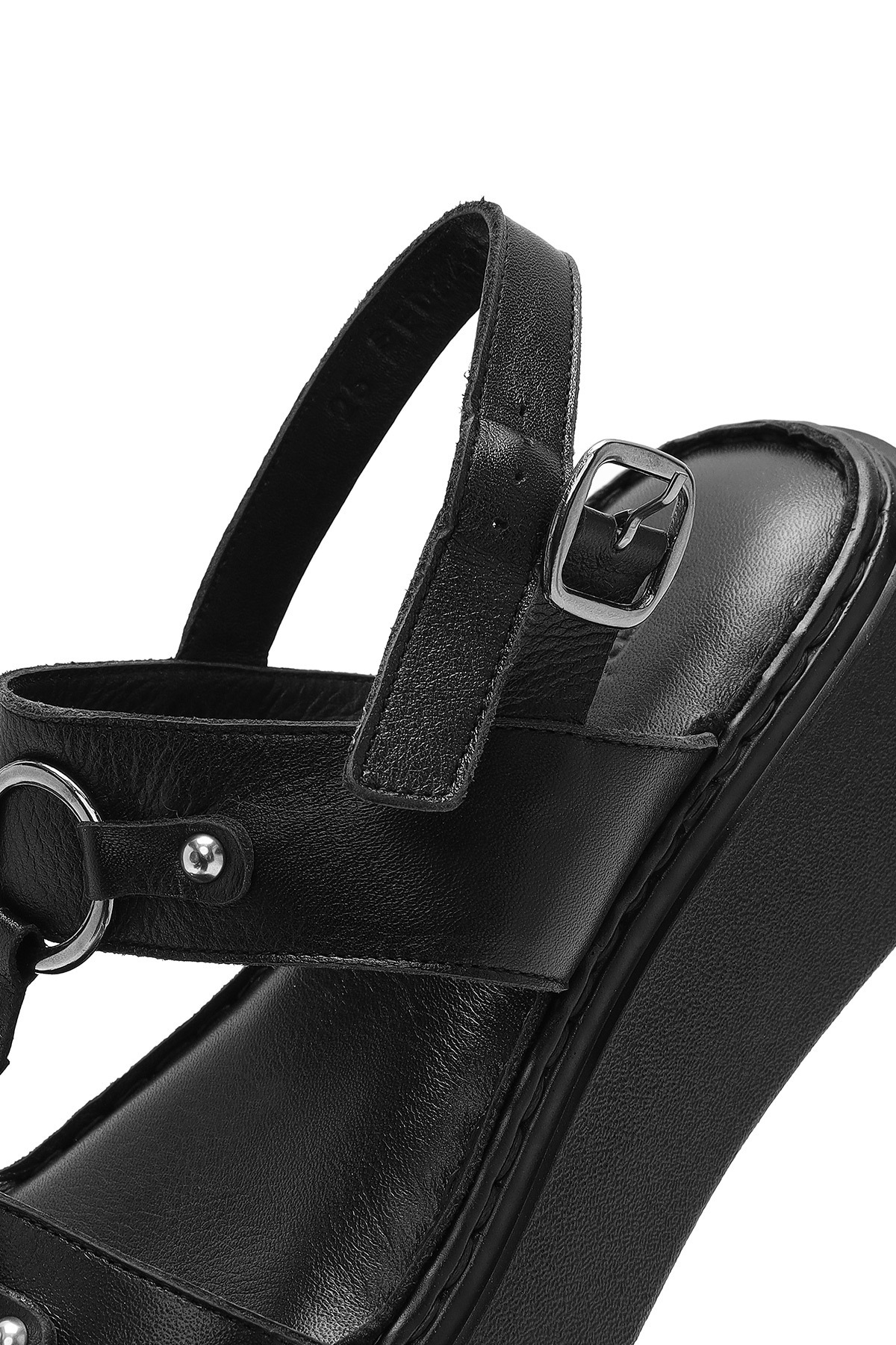 Kadın Siyah Bilekten Tokalı Kalın Tabanlı Deri Comfort Sandalet Sığır derisi içermektedir.