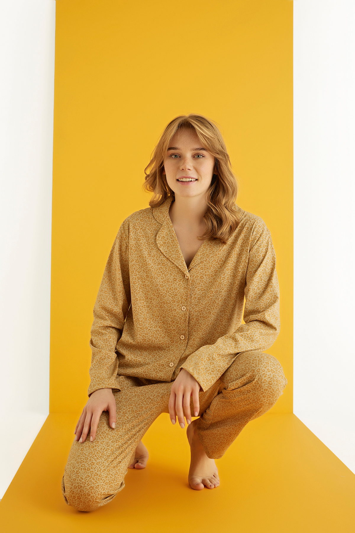 İki parçadan oluşan pijama takımı, rahatlığı ve şıklığı bir arada sunar