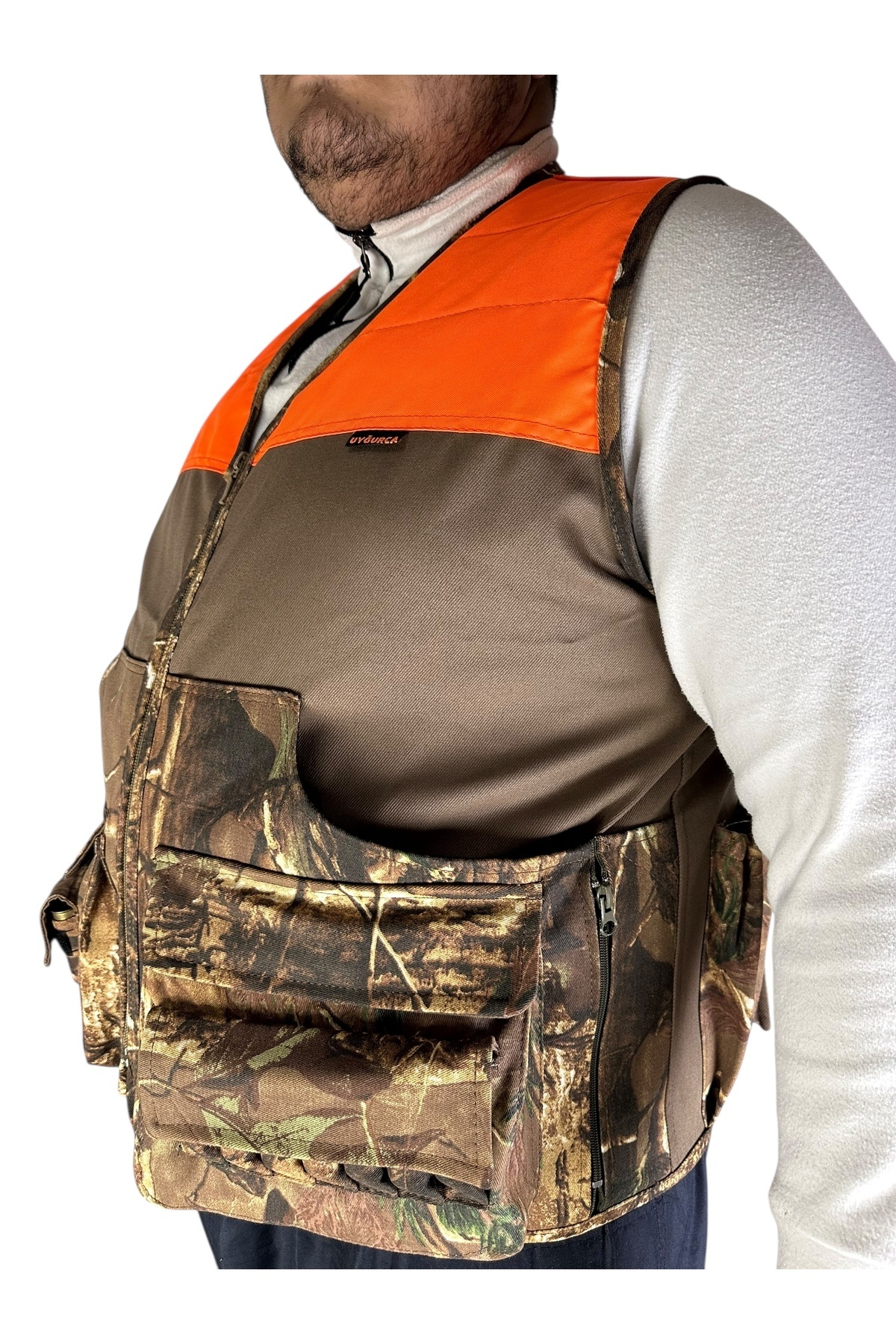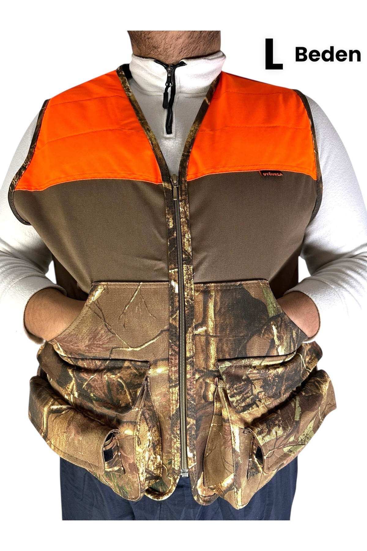 L Beden Turuncu Omuzlu Tulum Cepli Avcı Yeleği - 14 Fişek Kapasiteli - 12 Kalibre