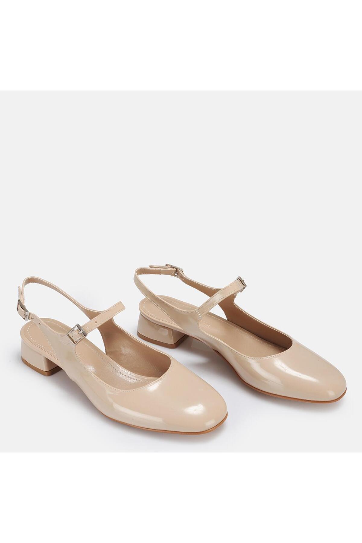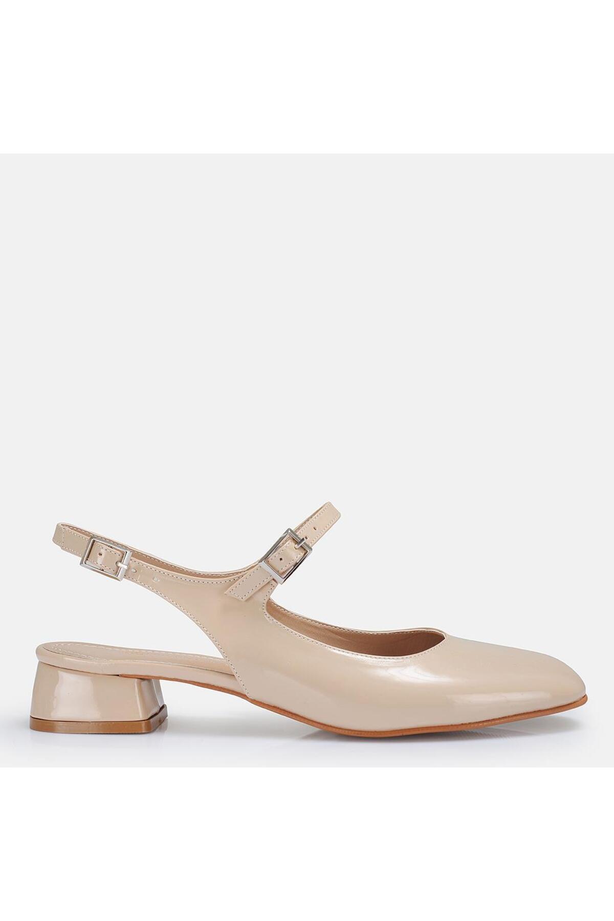 - Rugan saya malzemesiyle sofistike bir dokunuş eklerken, ten rengi tonları ayakkabının estetiğini tamamlar.
